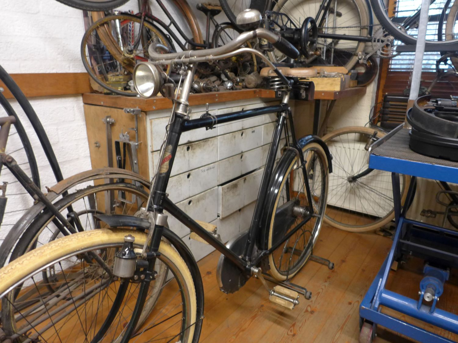 Hier nog twee betere foto's van de HZ 1913; ook de kleur grijs-groen. Overigens is deze fiets terug geweest naar de fabriek en van nieuwe lak en transfers voorzien.