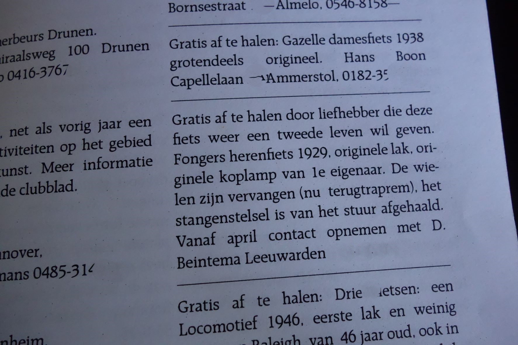 Er zat een stuur bij (van een andere Fongers fiets) en een trapas met tandblad en cranks.