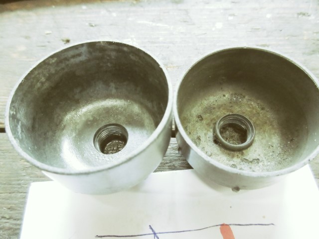 Bij een bromfiets/motor liefhebber bij mijn uit de buurt lagen gelukkig nog meerdere Bing carburateurtjes op de plank waar ik een vlotterbakje van kon gebruiken. Ondanks dat het ogenschijnlijk het model was dat ik nodig had bleek deze toch niet de juiste maat te hebben. Later vond ik een bijpassend bakje waardoor ik de maatverschillen kon vaststellen. Voordat ik het originele bakje had, heb ik mij moeten behelpen met een noodoplossing. Uit een stuk aluminium heb ik een getrapte ring gedraaid die de "missing link" moest zijn voor het niet passende deel. Door er een ruimte in te laten voor een O-ring kon ik het bakje middels de tussenring passend aan laten sluiten op de carburateur. Het motortje liep er prima om.