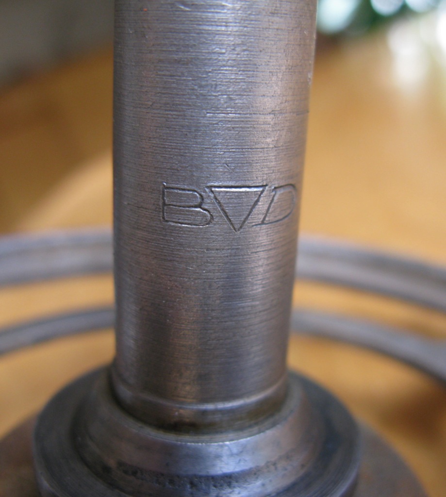Mijn fiets heeft volgens mij hetzelfde balhoofd, dezelfde vorkkroon, eenzelfde trapas en dezelfde letters ingeslagen op de crancks. Daar staat met zekerheid BVD ingeslagen.
