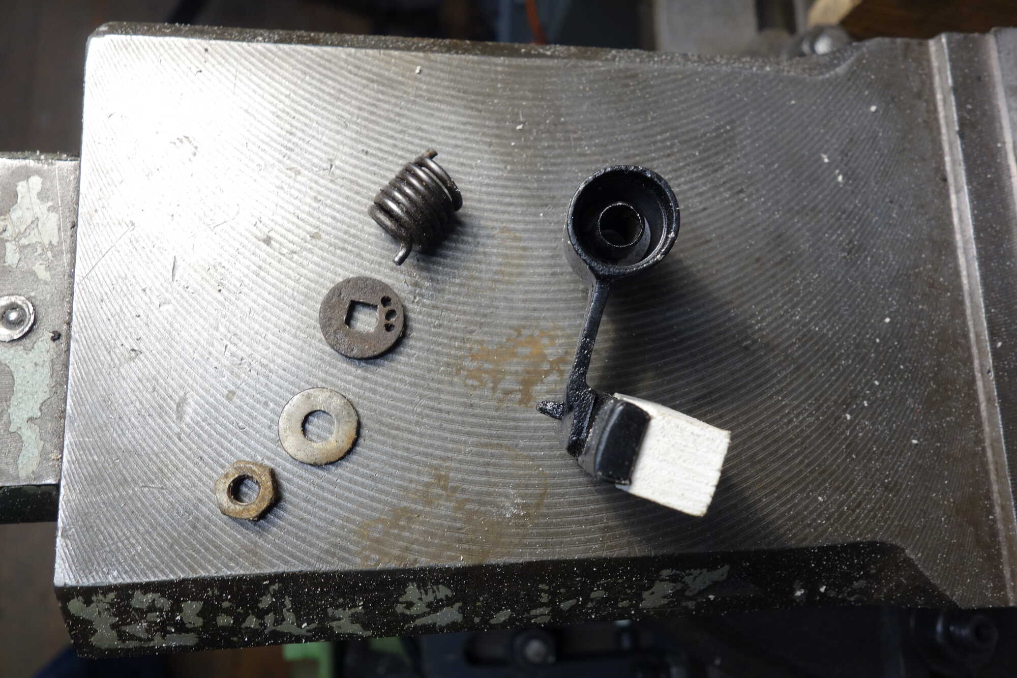 Voor de haakjes heb ik zelf een aanbeeldje gemaakt dat in een bankschroef te klemmen is.