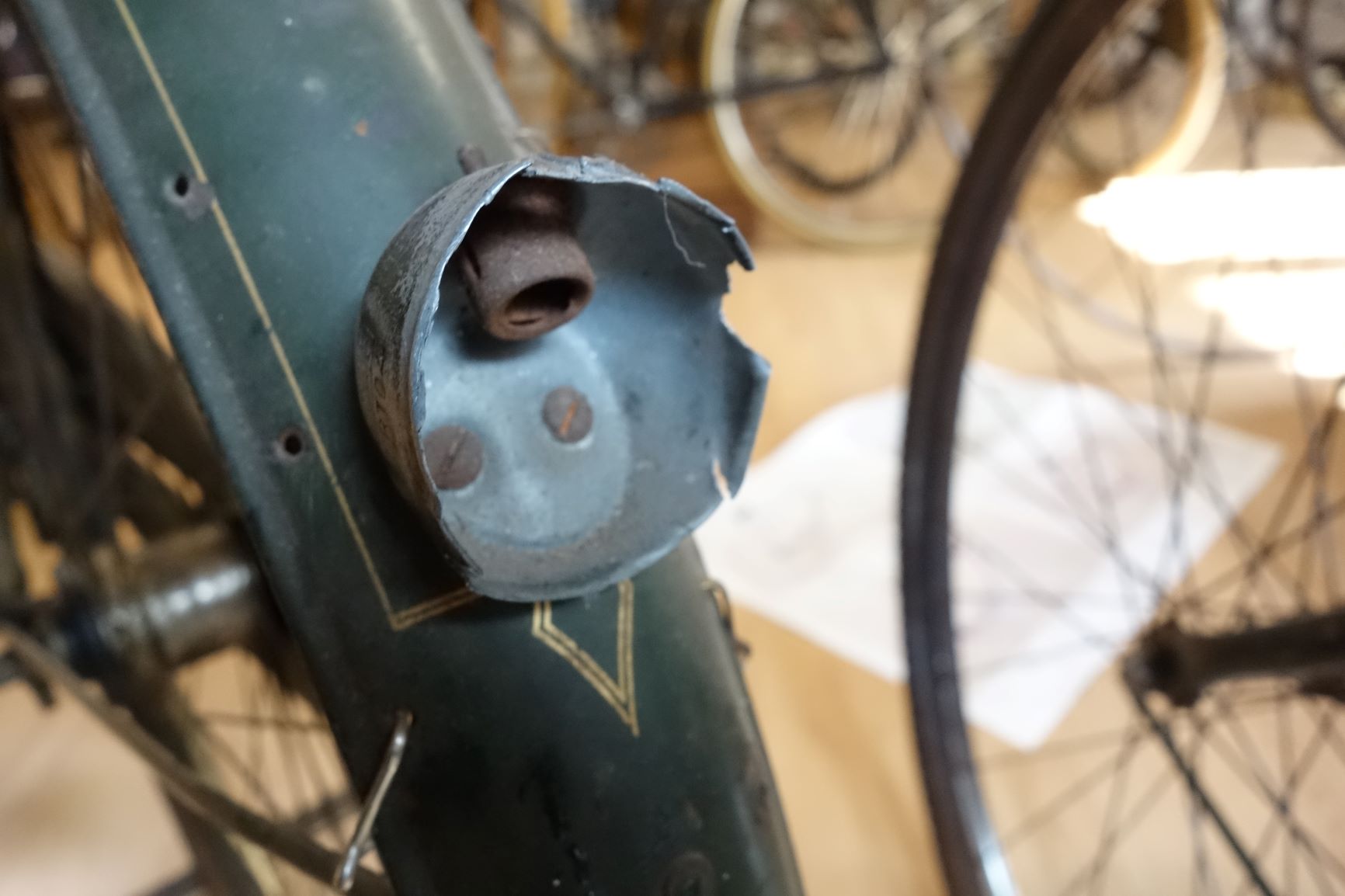 Deze gesneuvelde lamp heeft twee schroefjes op horizontale lijn. Dat zou mogelijk op jouw spatborden kunnen hebben gezeten Erwin.