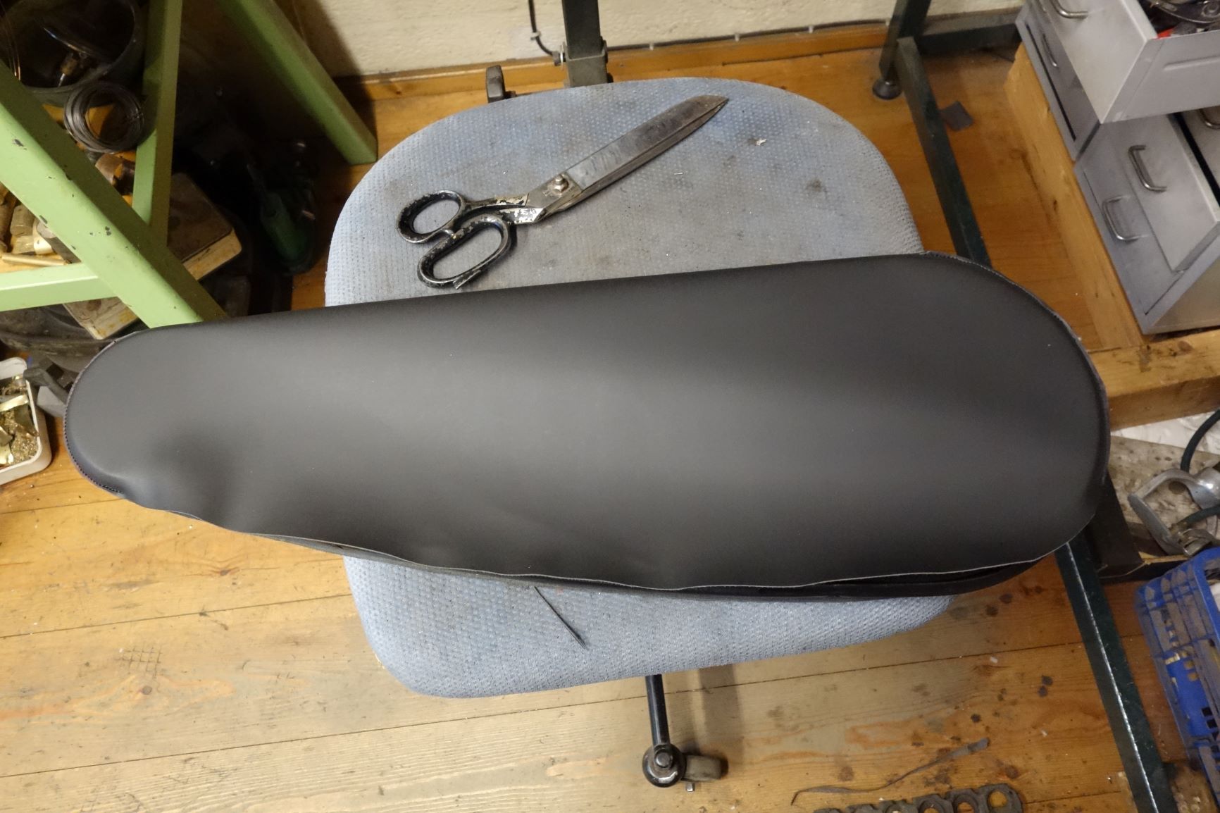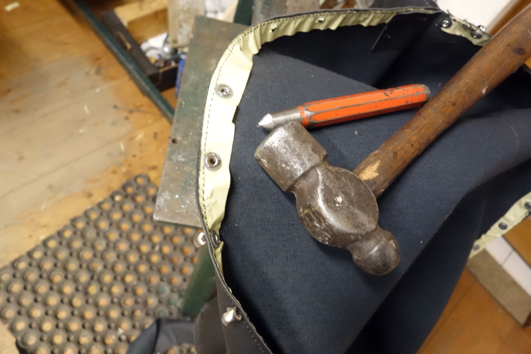 het frame. Dit omdat skay wat rekbaarder is dan de oude lakdoek en moleskin kettingkasten en door het opgespannen op te tekenen voorkom je dat de gaten niet op de juiste plaats terecht komen.