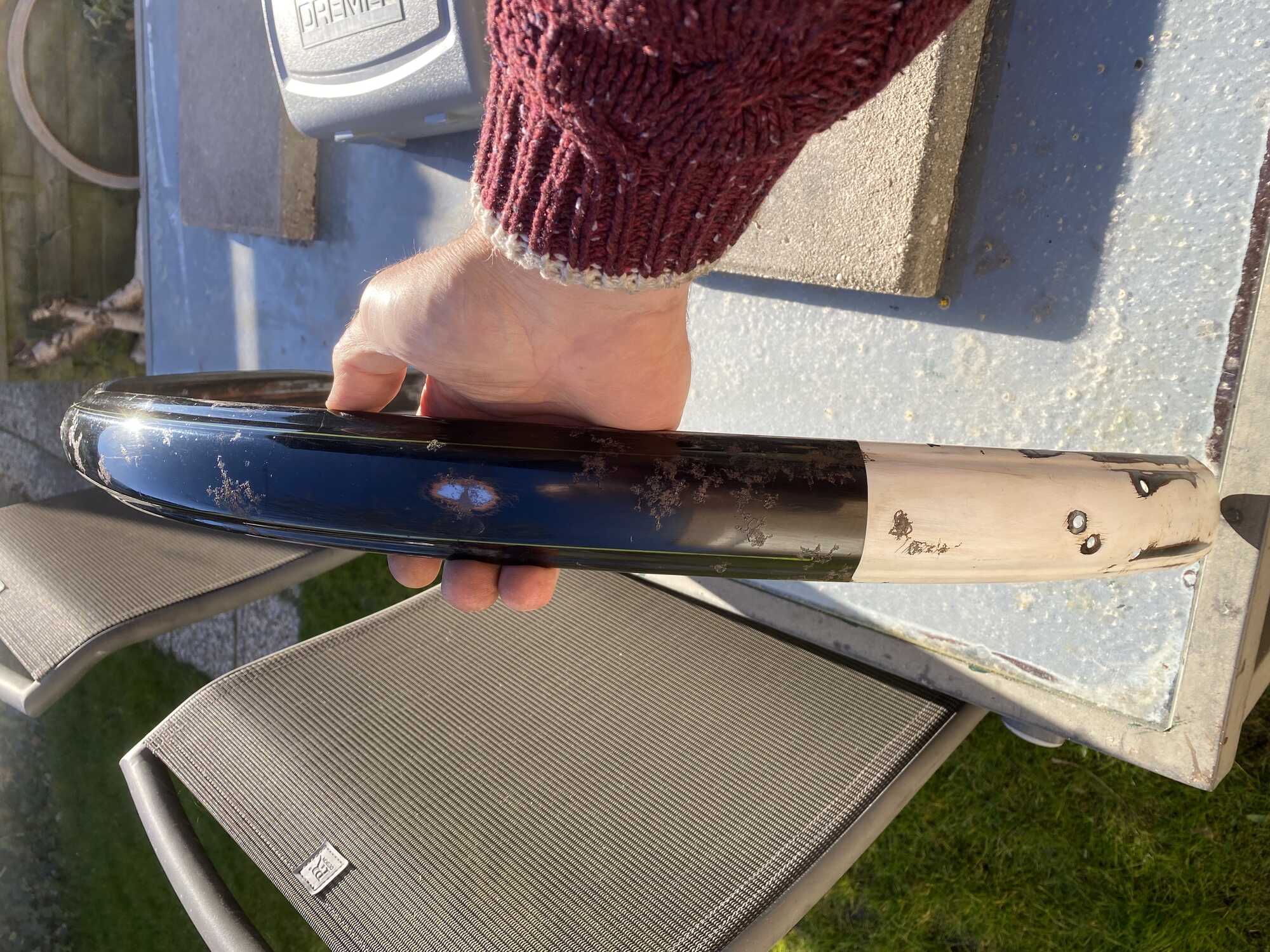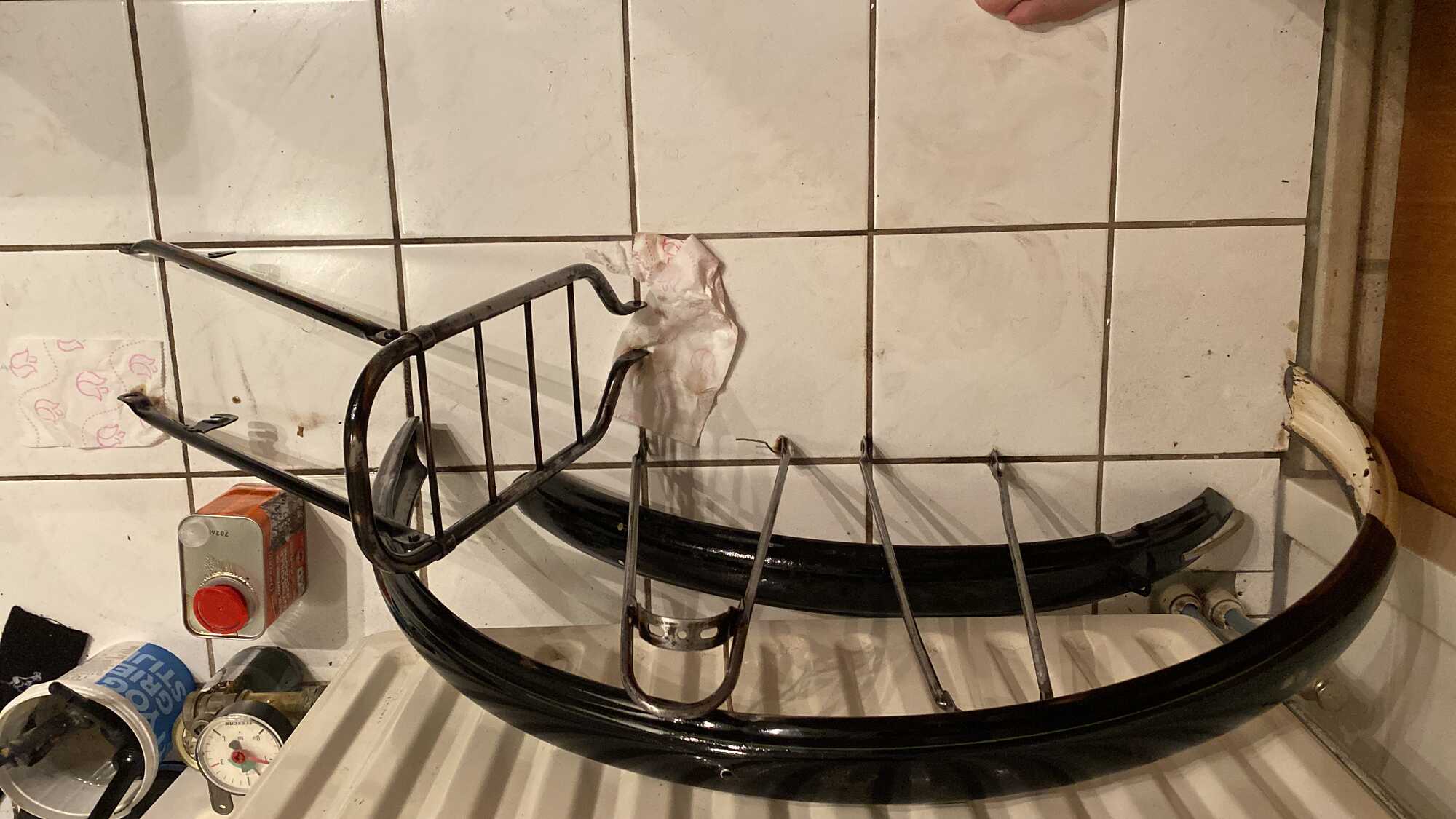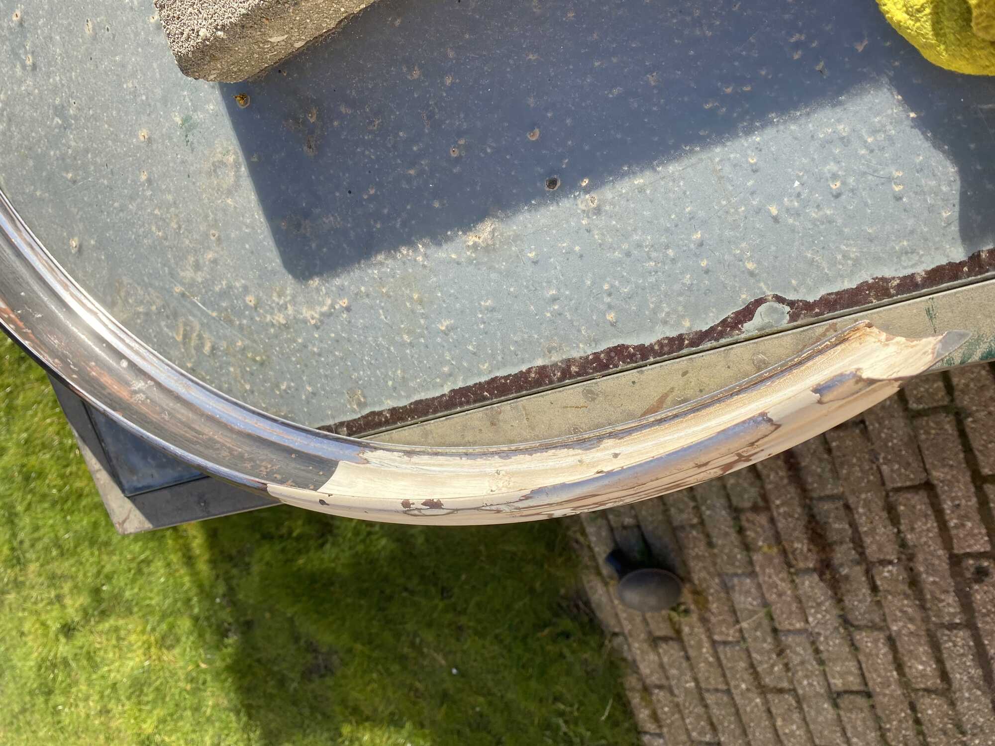 Spatborden zijn wat een compromis. De binnenkant zoveel mogelijk van roest ontdaan. Gaar owatrol op met hammerite er over. De buitenkant is even de witte flap (die maak ik van binnen ook wit) in de radiator lak spuiten dan is die weer mooi fris. Daar erg veel roest dat haalde de fiets naar beneden vond ik. De bovenkant werk ik paar kleine plekjes bij waar ik lastig bij kan maar laat ik verder zoveel mogelijk zoals ze was. Dus de biezen en ook enige roestvlekken blijven daar zichtbaar. Maar omdat de binnenkant goed beschermd is zal ie wel tegen een regenbui kunnen.