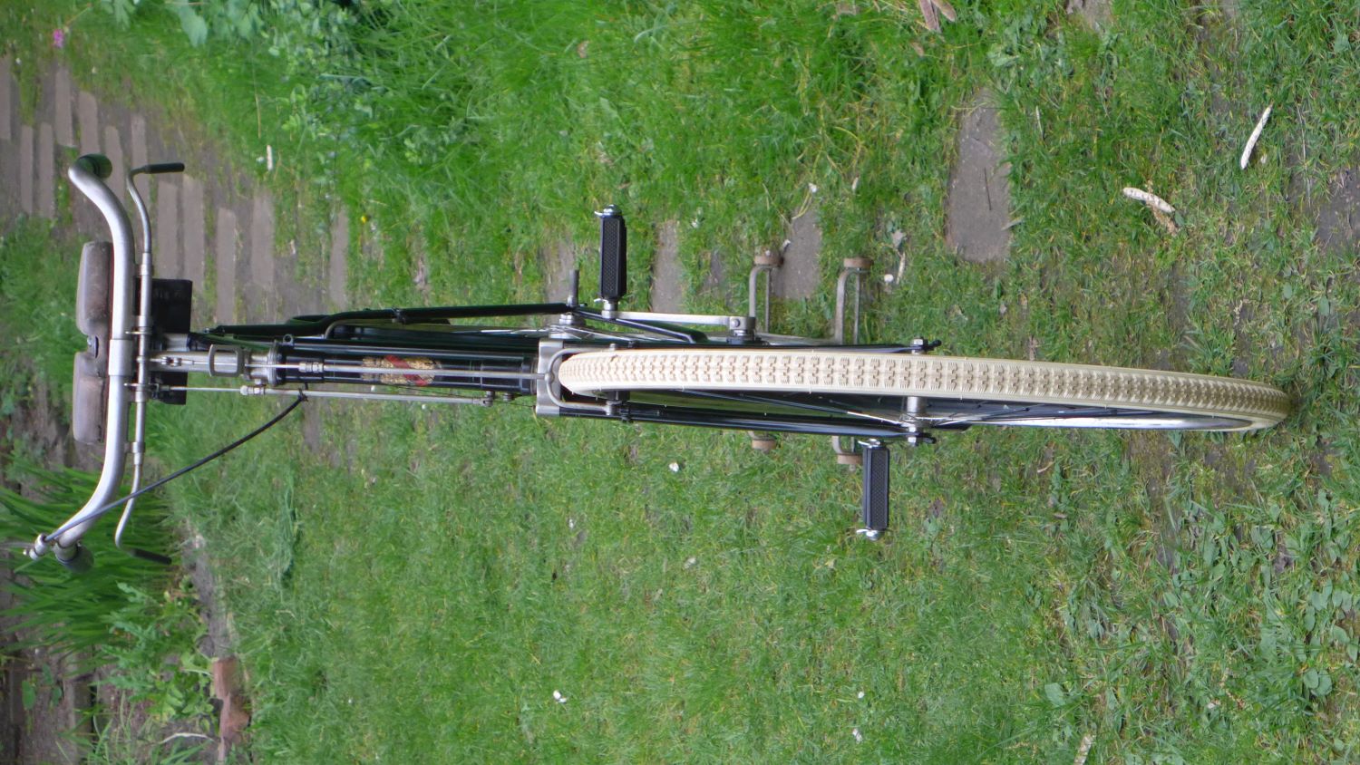 Roel uit Winterswijk had mooie Kronprinz velgen bij in Berlicum, en die zitten er nu voor en achter in. Ben ik zeer tevreden mee. Er moet nog best wat gebeuren aan de fiets en een aantal zaken zijn nog ongewis. Zo wil ik de Fongers pedaalrubbers nog gaan namaken en wil ik nog