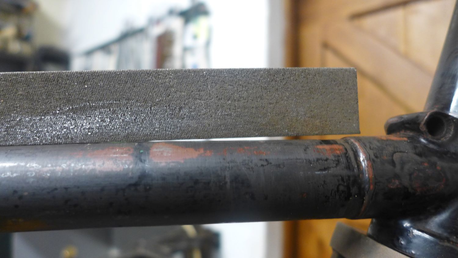 IK zag nog wat fotos terug van richtwerk aan deze fiets. Ik plaats ze bij deze. Het frame was lichtelijk opgereden.