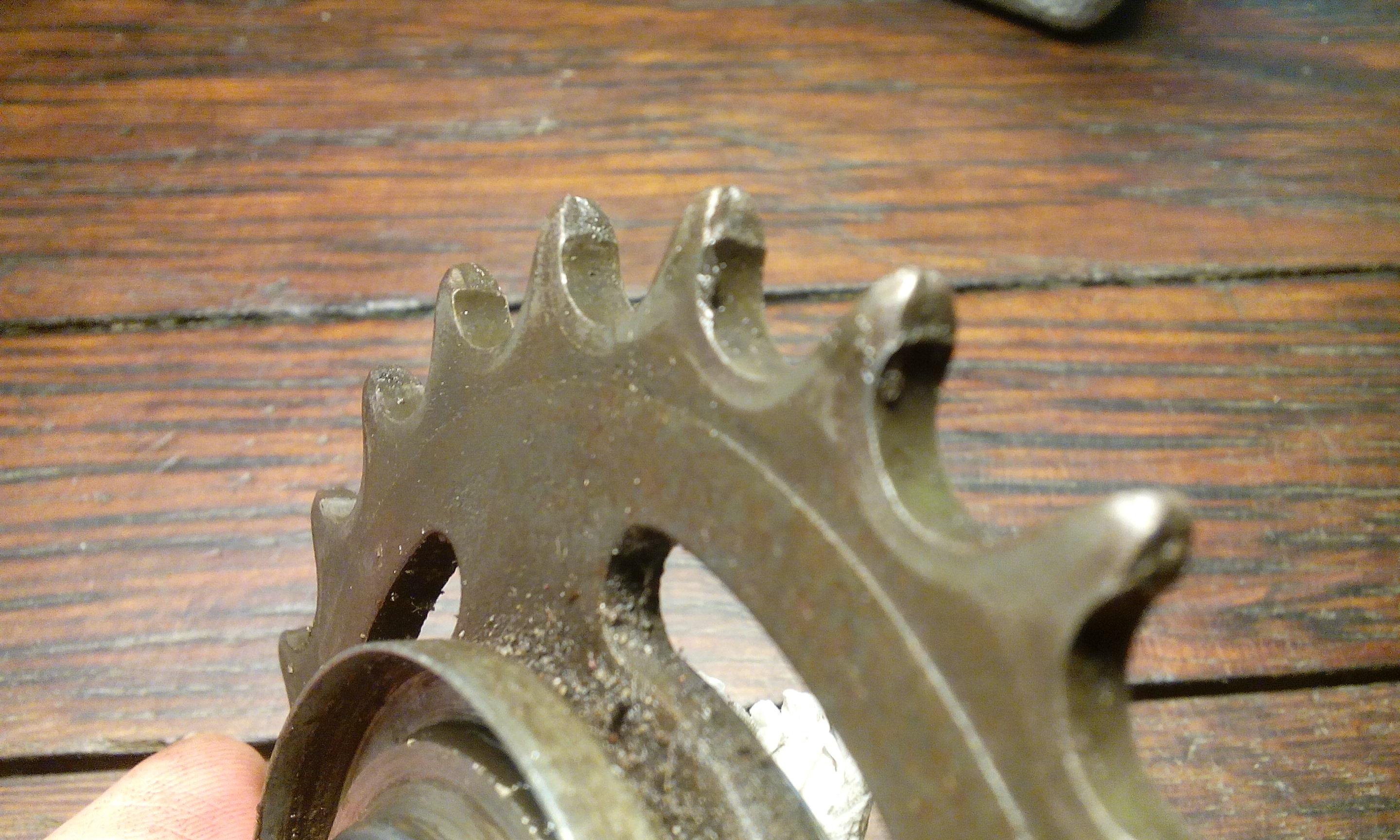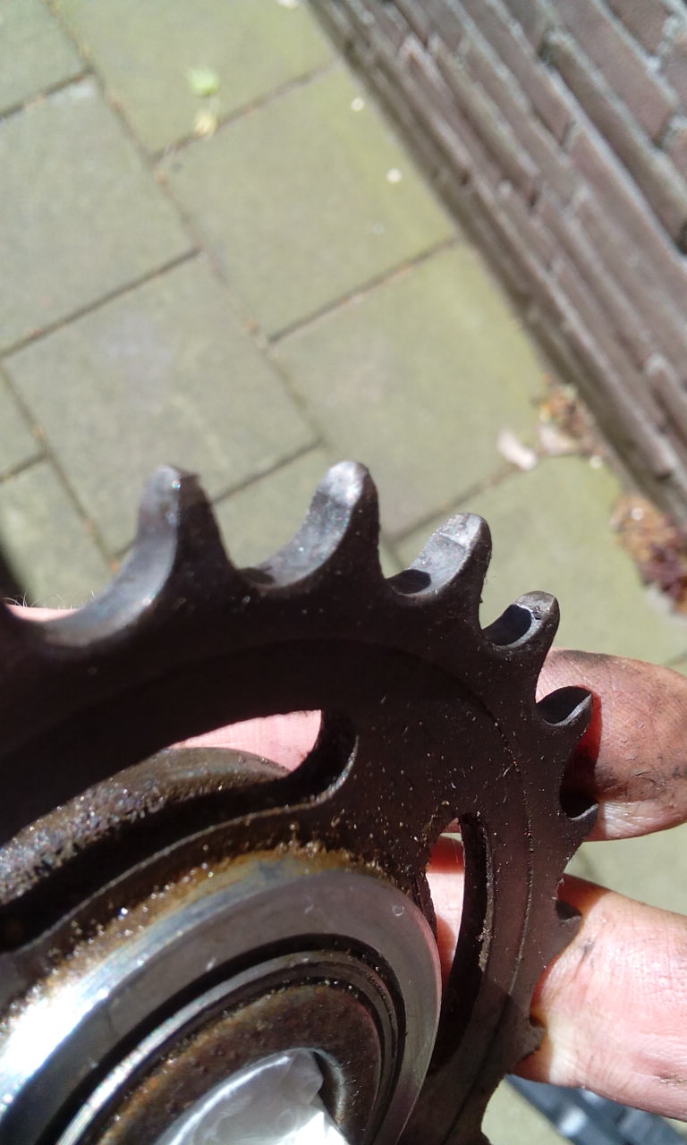 Dan pak je toch eens een aandrijflijn die al aardig op weg is en vervang je alleen de ketting of alleen een tandwiel. Je zal merken dat het beroerd loopt totdat beide komponenten vernieuwd zijn. De tandholtes worden breder (te zien aan de spitser wordende punten, waardoor de langere steek van de ketting weer plaats krijgt.Jeroen Zuiderwijk schreef: ↑6 mei 2019, 08.25 Dat was toen tandwielen nog gewoon te koop waren. Deze tandwielen zijn eindig kwa voorraad, dus ik moet er zo veel mogelijk kilometers uithalen.