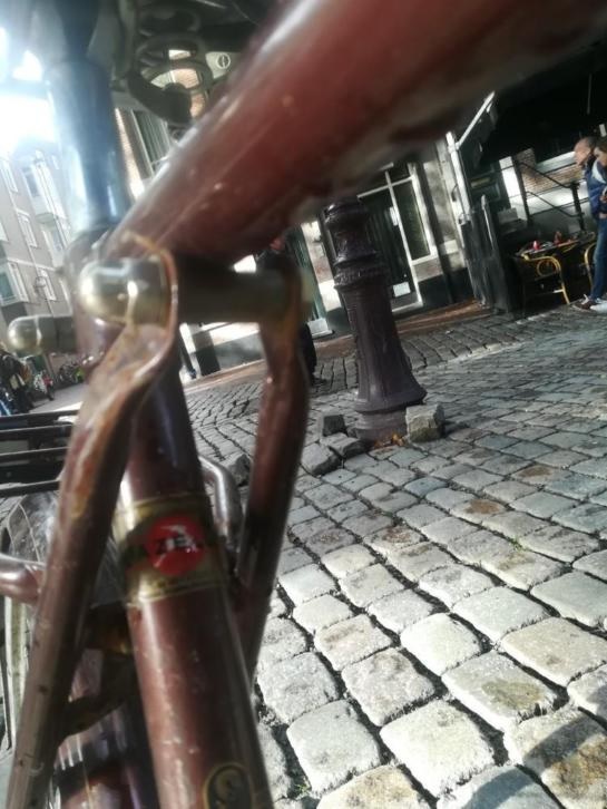 Dit stuur kom je maar heel zelden tegen. Jammer dat de wielen niet meer origineel zijn en dat de fiets is overgeschilderd. Wel een mooi hoog frame.
