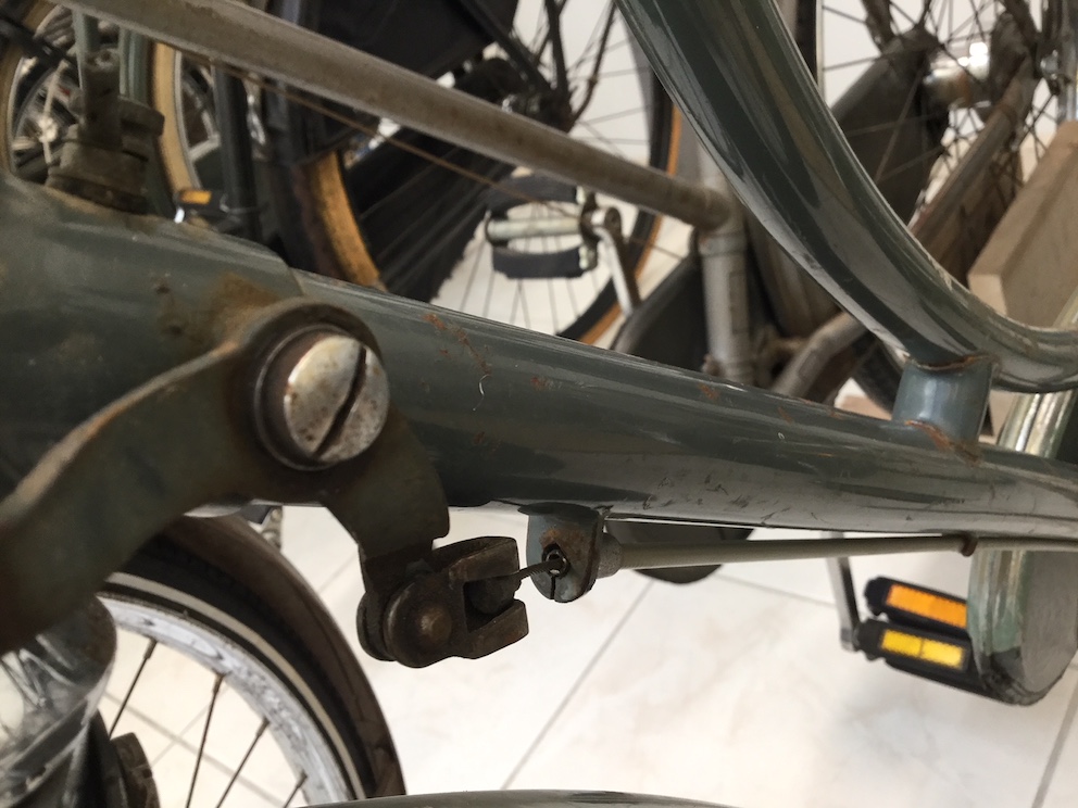 de overige fietsen en onderdelen zijn nog steeds te koop. Gait heeft altijd begin september een tweede hands fietsenmarkt. Veel van de fietsen die er dan nog zijn zullen dan als studentenfiets verkocht worden. Ik zou dat erg jammer vinden. Zeker voor een aantal bijzondere fietsen die er nog staan. Behalve de Gazelle, Burgers, Fongers fietsen staan er een aantal die ik bijzonder vindt. een prachtige Adek in de orginele lak met rode biezen en originele kettingkast (er is wel een andere remnaaf in gevlochten). Ook een bijzondere Phoenix , grijsgroen ook helemaal origineel. Deze fiets heeft een bijzonder remsysteem dat ik nog nooit gezien heb. De remstangen gaan over in een kabel. zie foto's. ik ken dit van geen enkel merk. ook heeft deze fiets een spieloos crackstel , net als Juncker.
