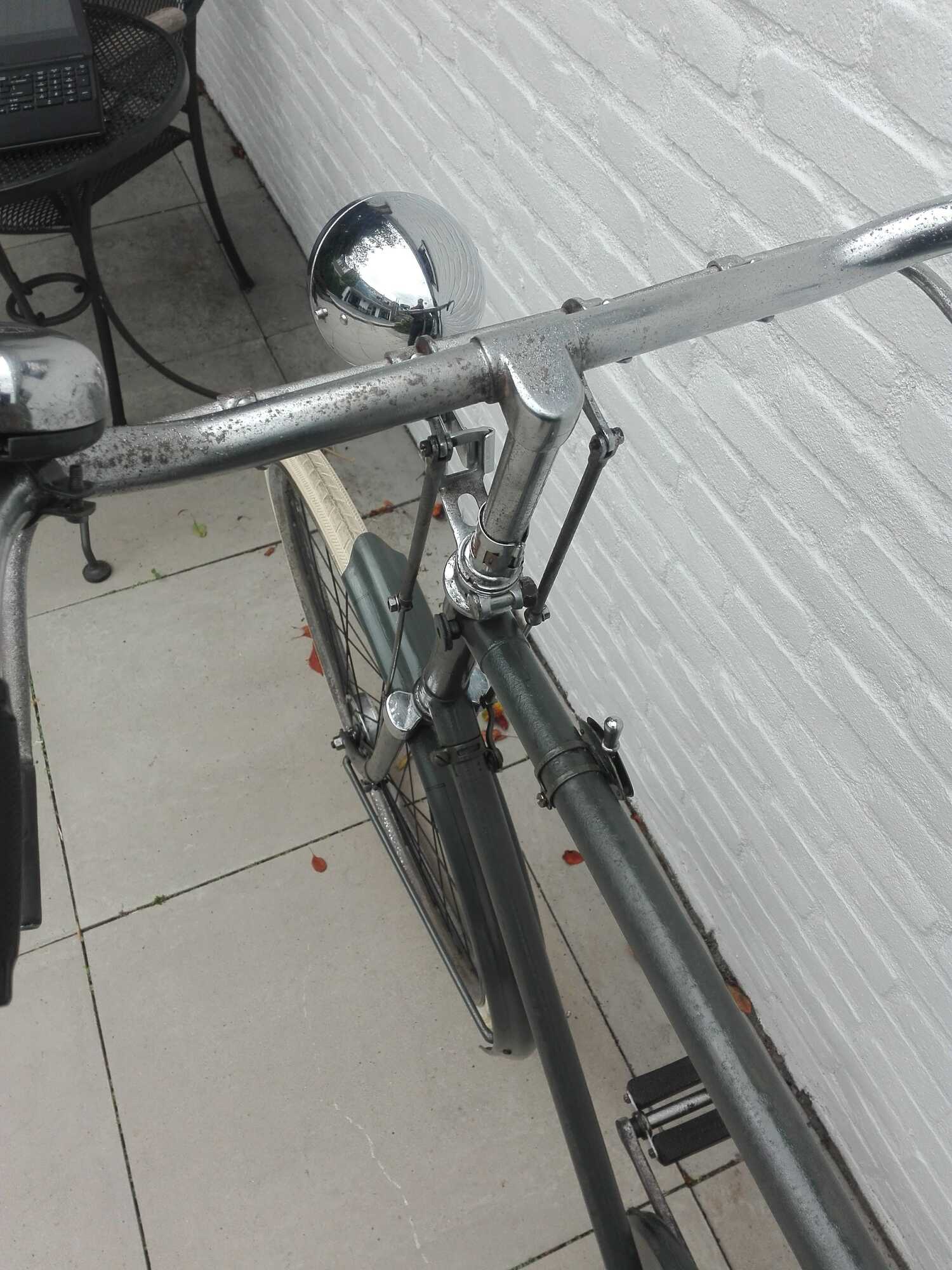 Ondanks de tamelijk beroerde staat waarin ik hem aantrof is de fiets technisch helemaal in orde. Het is een robuuste kar (23 kg), die ook prima rijdt (maar hoog zit; als er geen stoeprand is moet ik afstappen). Ik vind dit wel een mooi voorbeeld van een fiets 'van vooroorlogse kwaliteit'.
