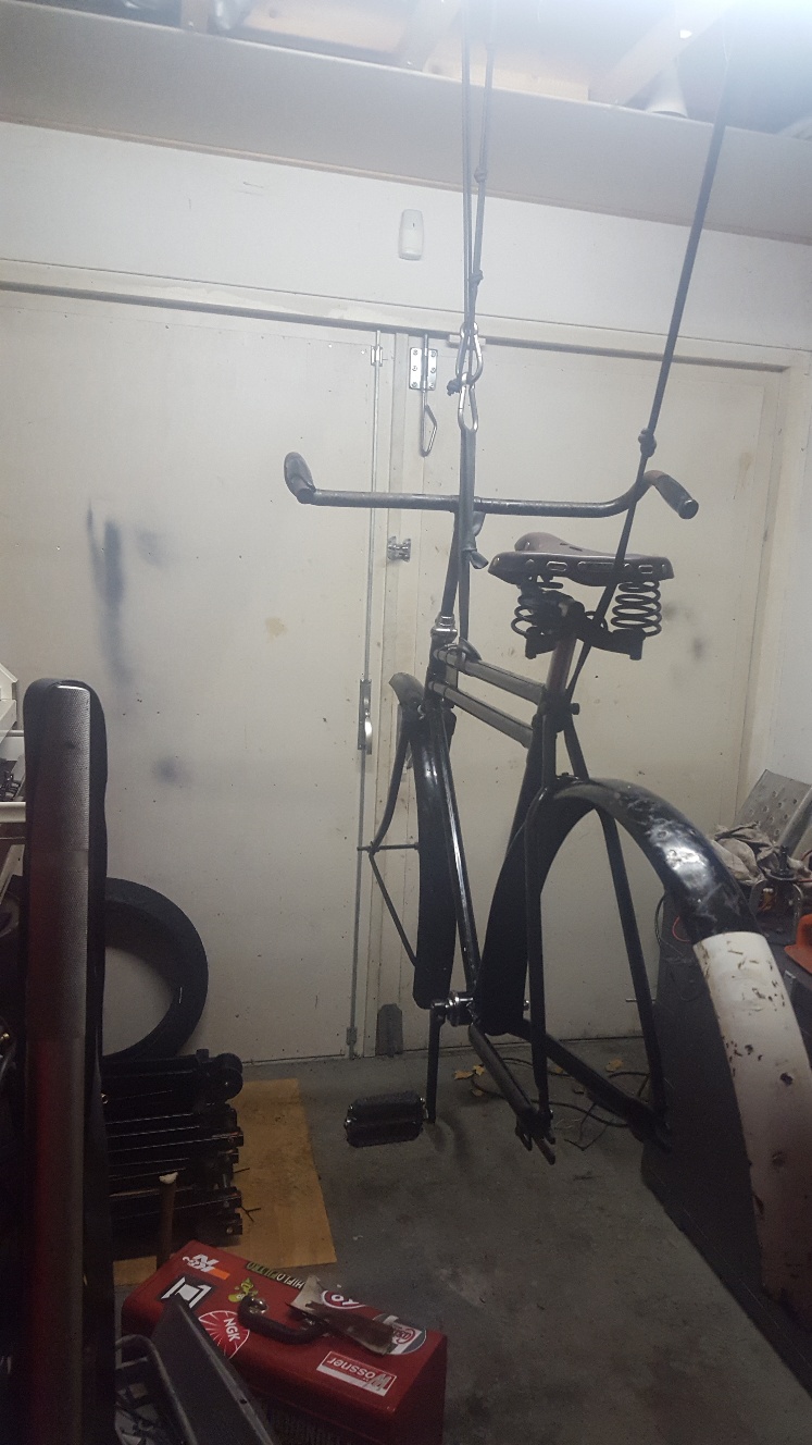 Ik heb geen idee hoe de fiets er toen uitzag, de fiets is zover ik met mijn beperkte kennis kan zien nog nooit gerestaureerd. Wel is de rechter cranck krom en de kettingkast aardig gebutst. Het stuur is iets krom en de ketting zit vastgeroest. Ik heb hem nu in de garage hangen en ben hem weer technisch in orde aan het maken.