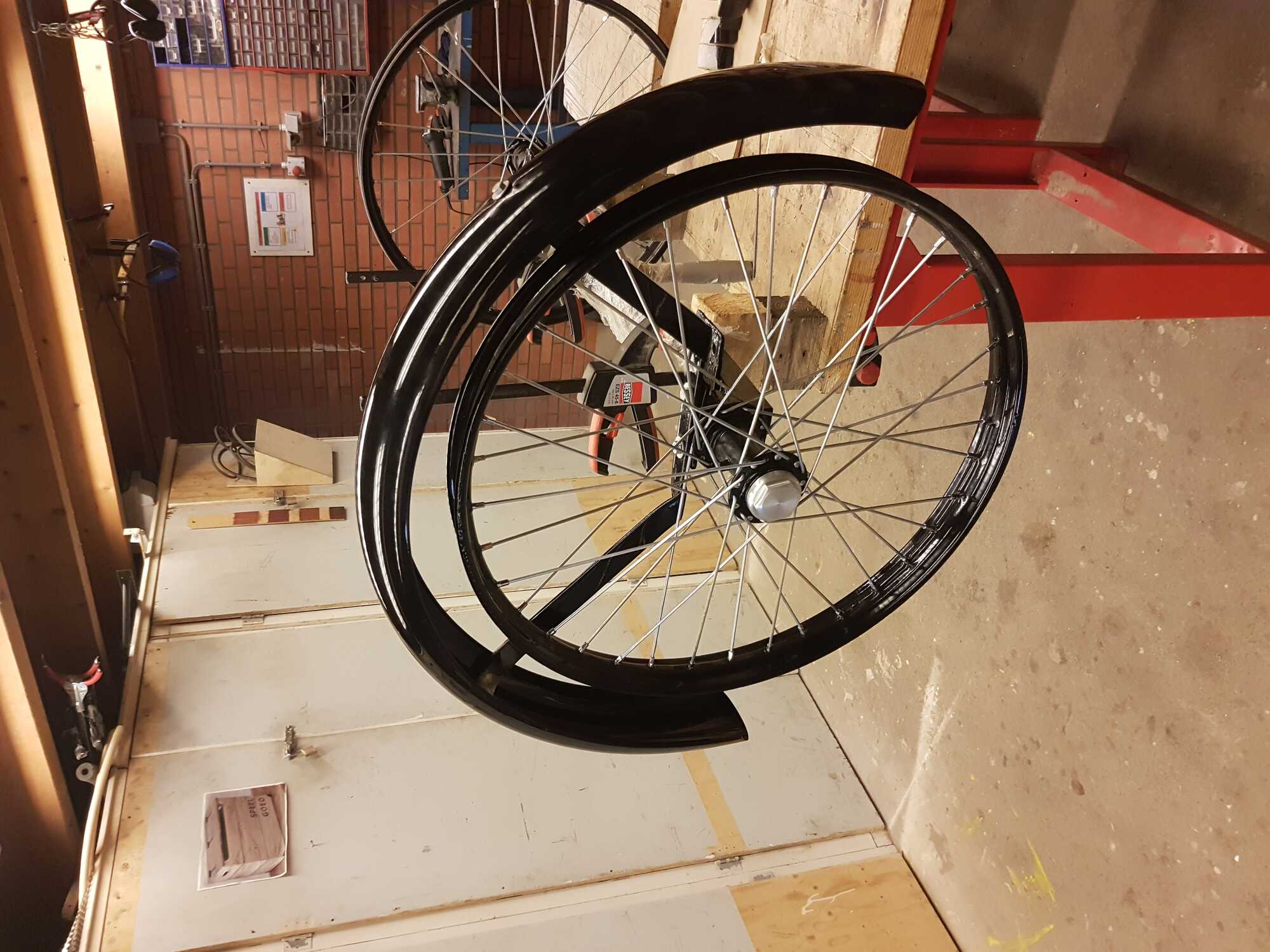 Hij is af. De paar missende spaken niet aan te komen. Of ik moest in China rvs spaken bestellen. Dus de 5 oude zilver gespoten. Zie je gelukkig niets van.