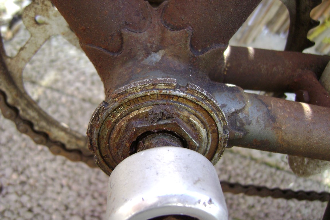 Dan blijft er nog de vraag van het crankstel. Er zit een vierkante as in, maar die zou ook van het nieuwe crankstel kunnen zijn wat erop zat.