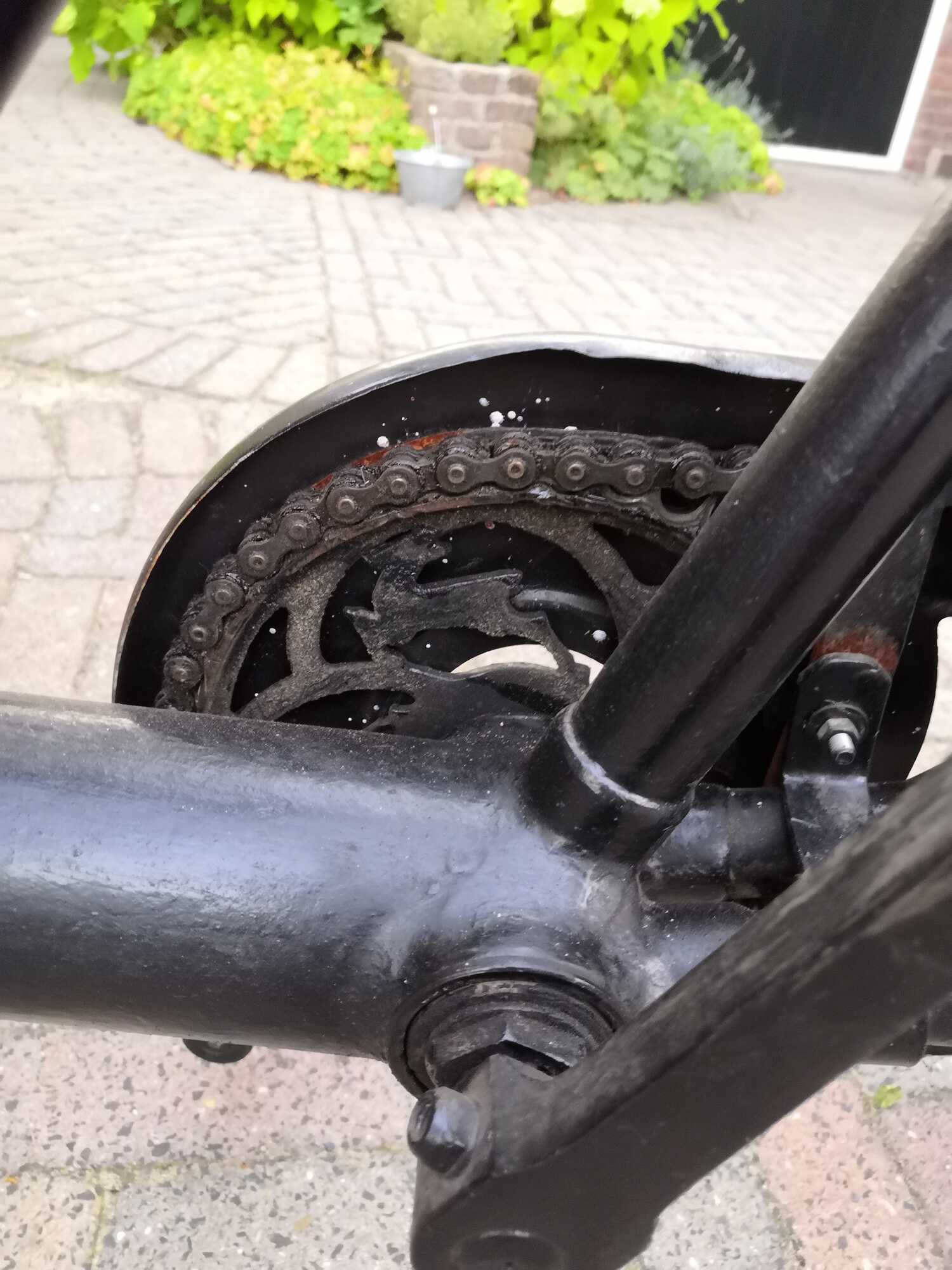 De remhevel is ook wel heel apart. Er is flink verbouwd aan die bakfiets. Dat is niet ongebruikelijk, ik heb al heel wat zwaar verbouwde bakfietsen gezien. Soms is zelfs het hele frame opnieuw gebouwd uit aan elkaar gelaste buizen.