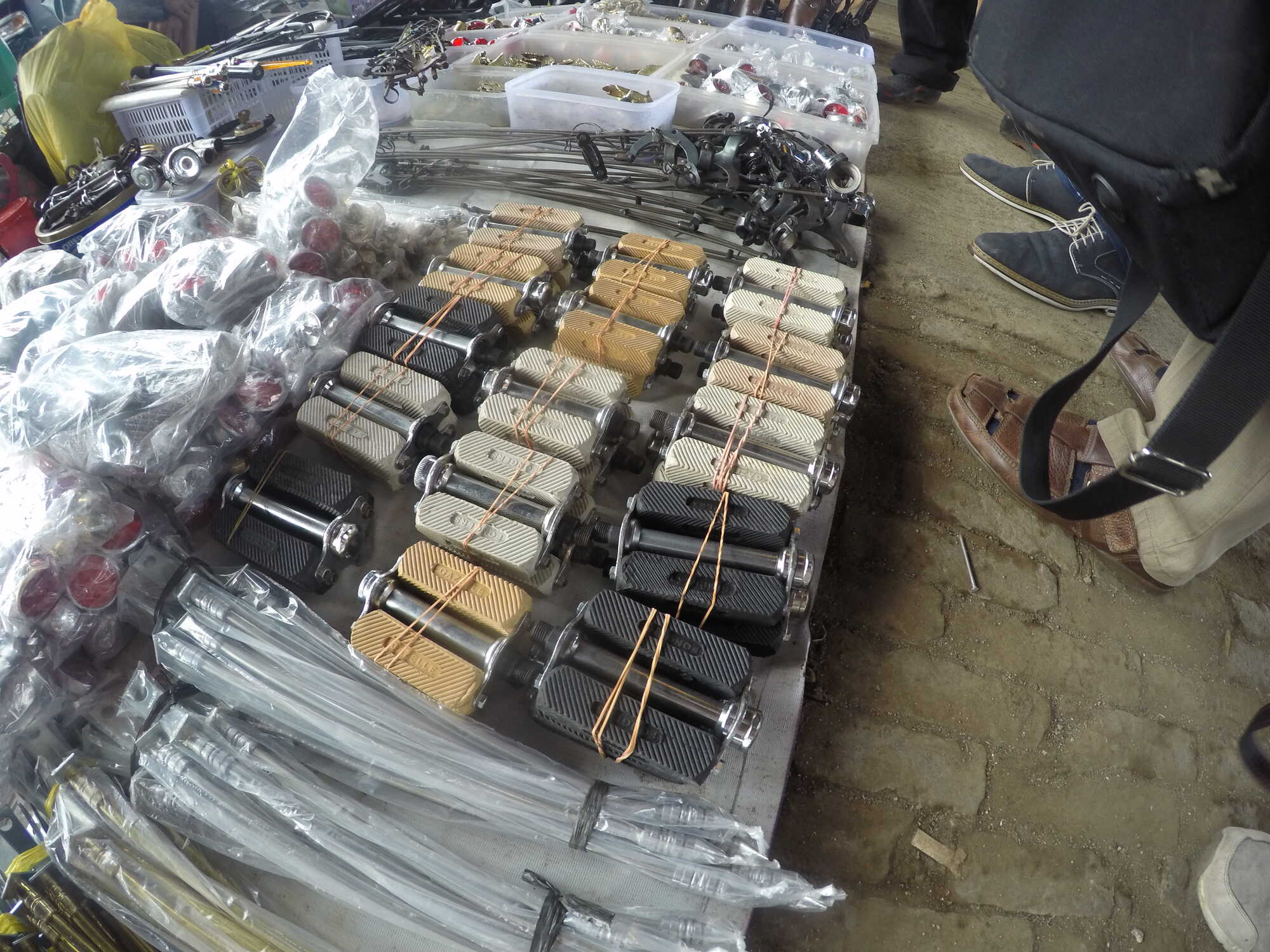 De volgende dag begon het evenement en in de middag was de eerste ceremonie gepland. We werden door Firman netjes opgehaald bij het hotel en naar het evenement gereden. Aangekomen bij het evenement werden we begroet door een aantal Indonesiërs die we in Nederland al eens hadden ontmoet. Jen was al eens eerder in Indonesië geweest en ook Jos kende natuurlijk al de nodige mensen daar. Als eerste werden we begeleid naar de marktlocatie waar allerhande oude fiets spullen werden verhandeld. De markt bood allerlei fiets gerelateerde zaken (pedalen, bellen, zadels) en veel hebbedingetjes (tasjes, broekriemen, sleutelhangers, reclameborden), met o.a. het Fongers-logo er op. Er waren ook wel wat originele (Fongers) onderdelen, zoals dynamo's, achterlichten, sturen, etc., maar dan wel tegen tóp prijzen.