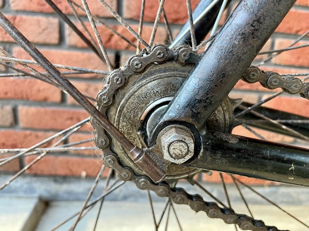 Heeft deze fiets dus een freewheel en geen remsysteem, of een vast tandwiel ? Dat eerste lijkt me wel een linke combinatie idd en niet alleen in Utrecht. Heb je een idee hoe de uitvoering oorspronkelijk was ? Wel heel bijzonder dat de fiets zo lang zo compleet is gebleven !