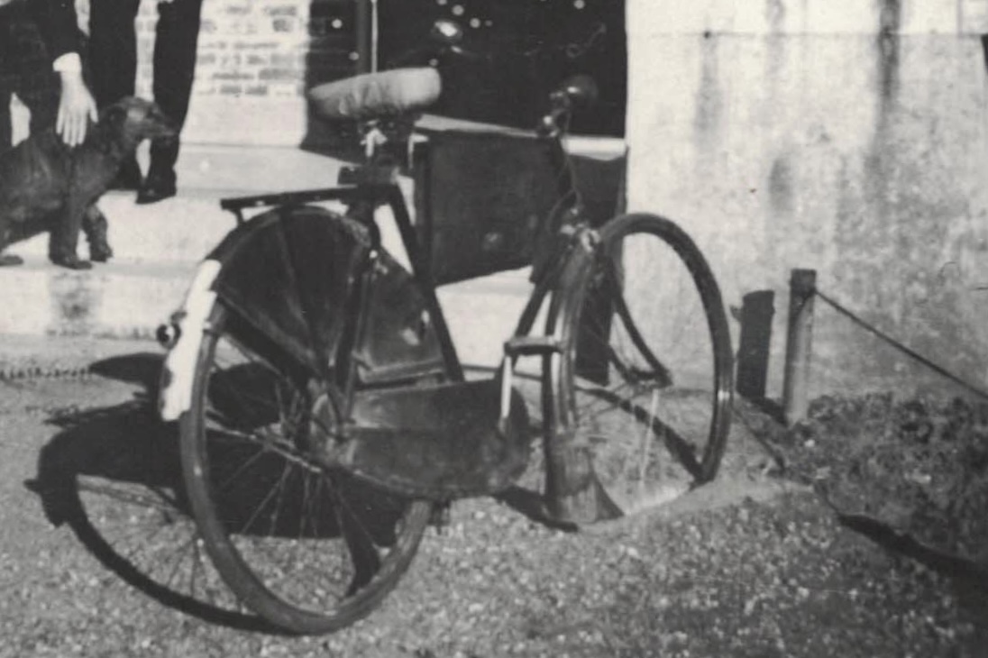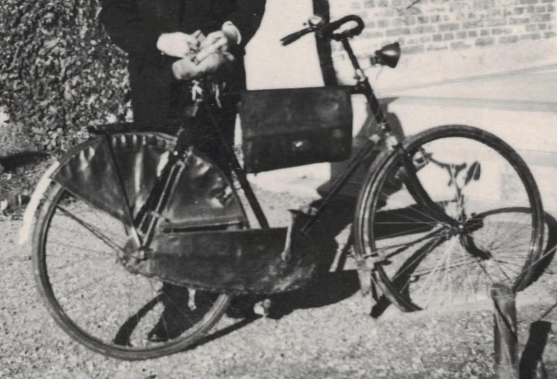 En hierbij een uitsnede van de twee ontvangen foto’s waarop de fiets te zien is, genomen ergens in de jaren ‘30/‘40.