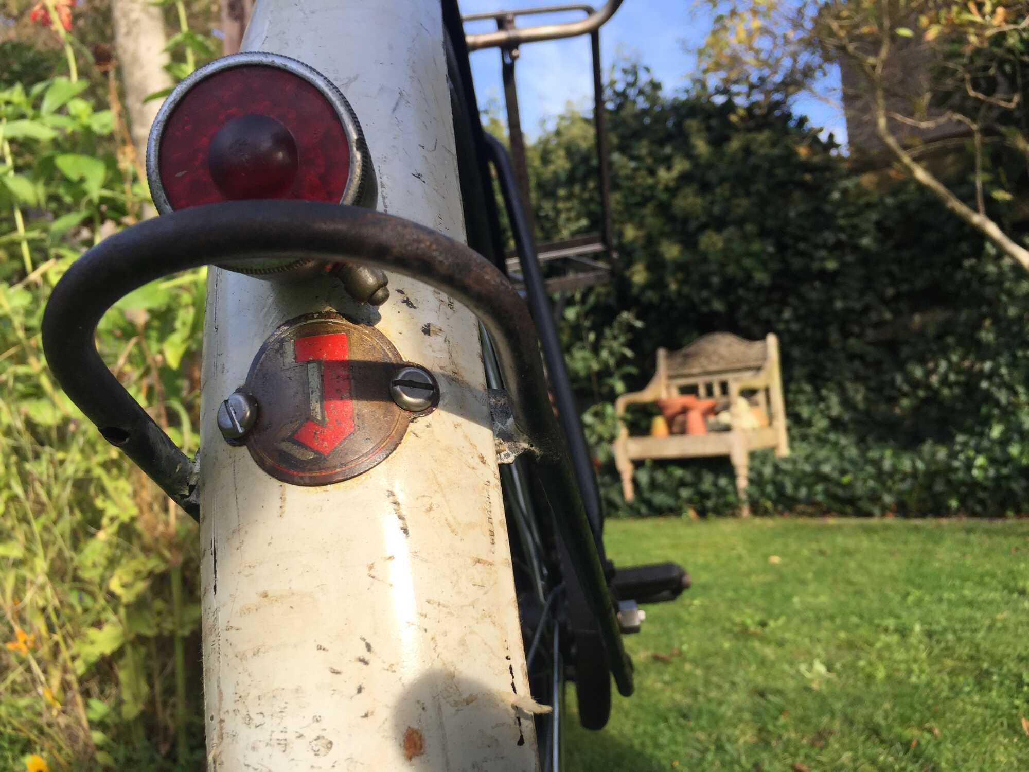 Het was niet gebruikelijk om op een voorvork van een transportfiets een transfer te plaatsen maar hier zitten ze dus wel op. Aan een kant kwam ik een hele mooie kettingspanner tegen die ik nog nooit had gezien. Een van de twee is blijkbaar vervangen maar ik weet niet welke.