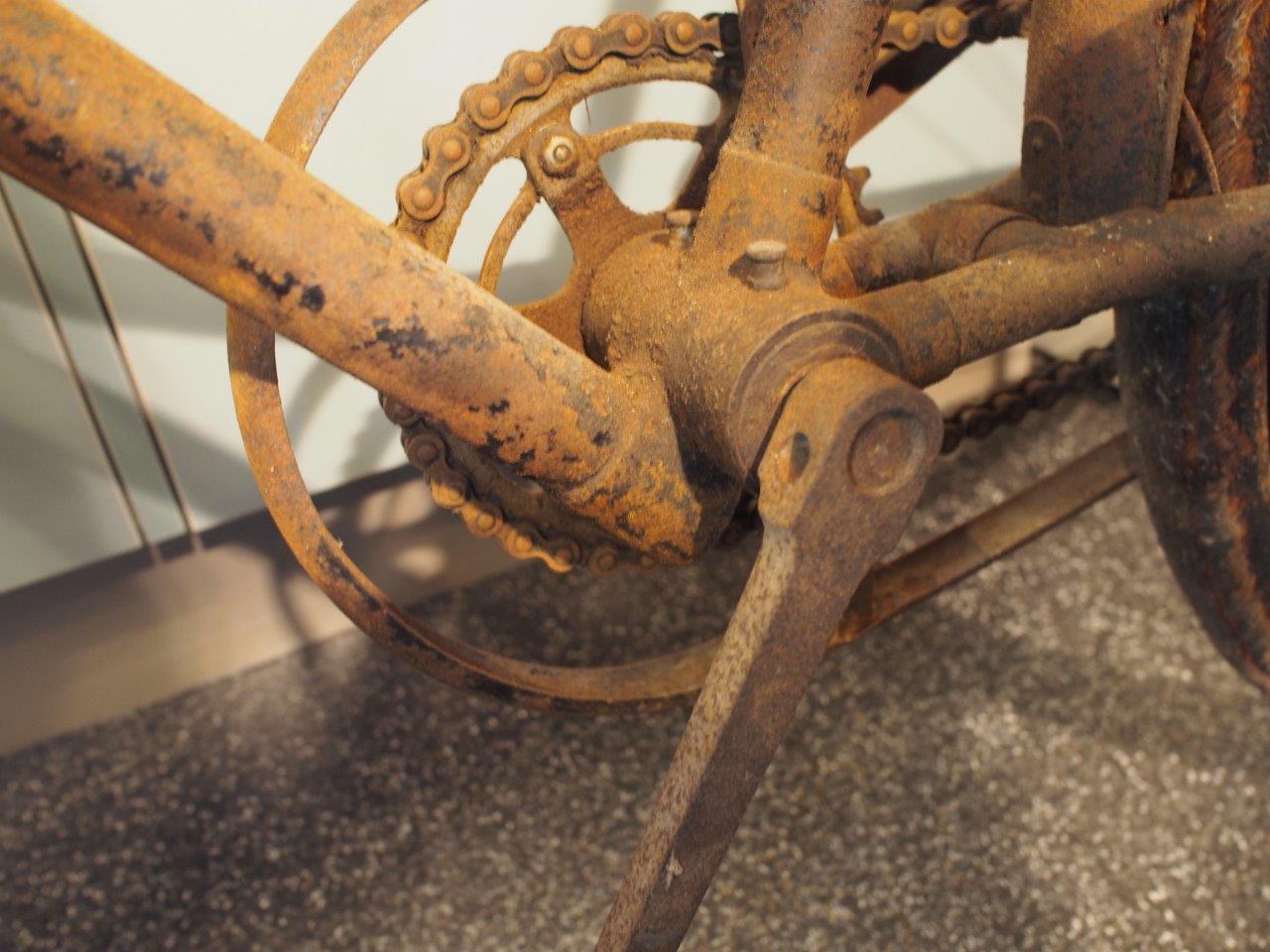 Kettingschakels en handvatten zijn gemerkt met 'ROVER' dus waarschijnlijk origineel. Al met al een heel mooi fietsje! Nu nog zoeken naar een passend zadel....