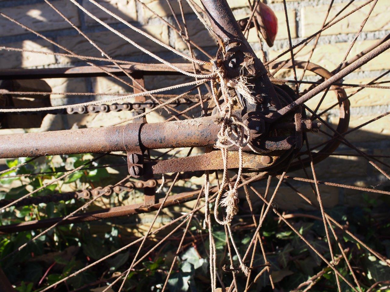 De wielen zijn in de ouderwetse maat 28 x 1 3/8e, (37-642), de ketting is zwaarder dan in later jaren gebruikelijk.