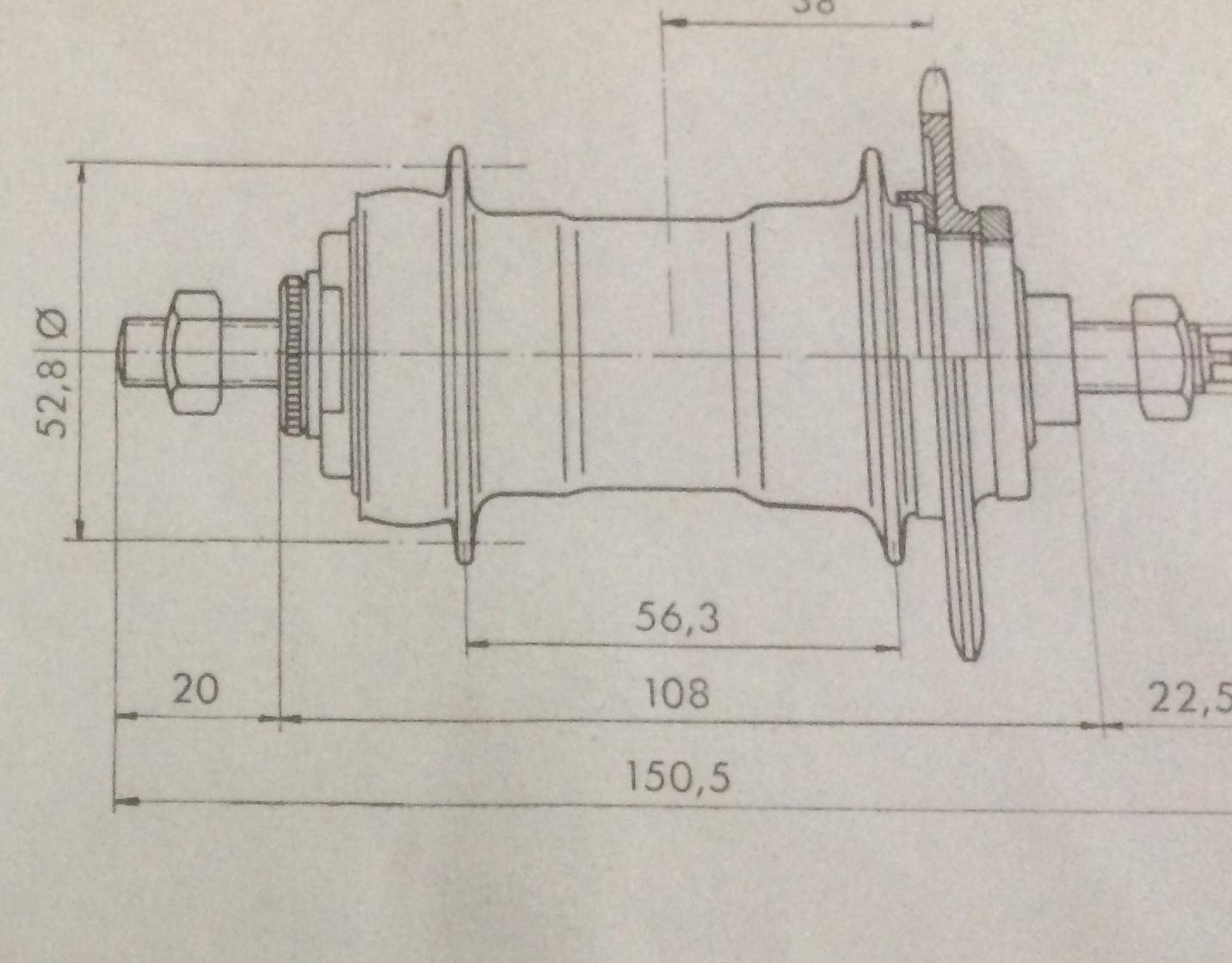 Verder zou ik zowiezo geen moderne naaf erin zetten. Zeker niet de EC-B110, dat is een gevaarlijk slecht ontworpen naaf, en de reden waarom ik nu alleen nog maar met echte Torpedo remnaven werk (de EC-B110 zat in mijn vouwfiets, ben ik door over de kop gevlogen toen de remnaaf plotseling vast sloeg door een falende as). Daarnaast is de EC-B110 te smal, waardoor je ketting niet goed gaat uitlijnen, en daarom niet goed loopt. Remnaven van de kwaliteit van Fichtel Sachs Torpedo naven worden helaas niet meer gemaakt.