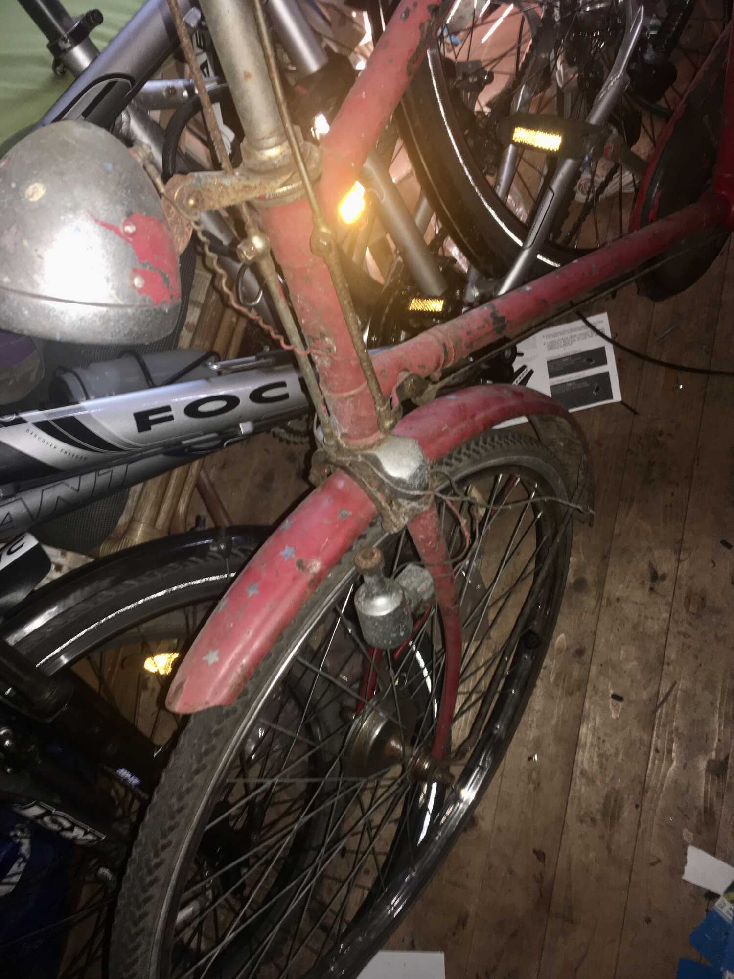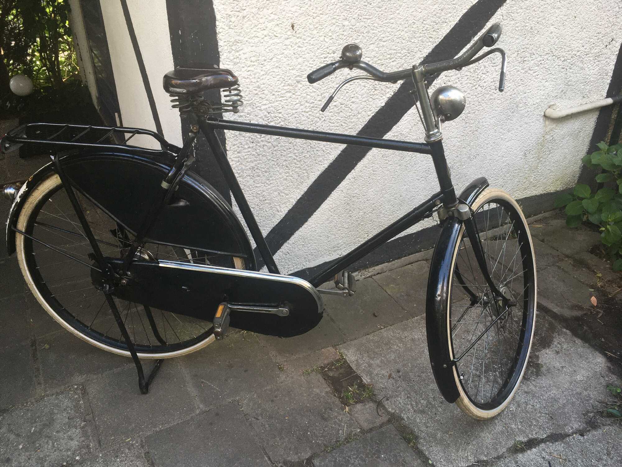 De velgen zijn van RVS, dat hoort hier niet thuis, de achterste 28x1 1/2en de voorste 28x1 3/8x1 5/8, dus dat is ook nog eens een verkeerde maat, de trommels lijken me wel orgineel....