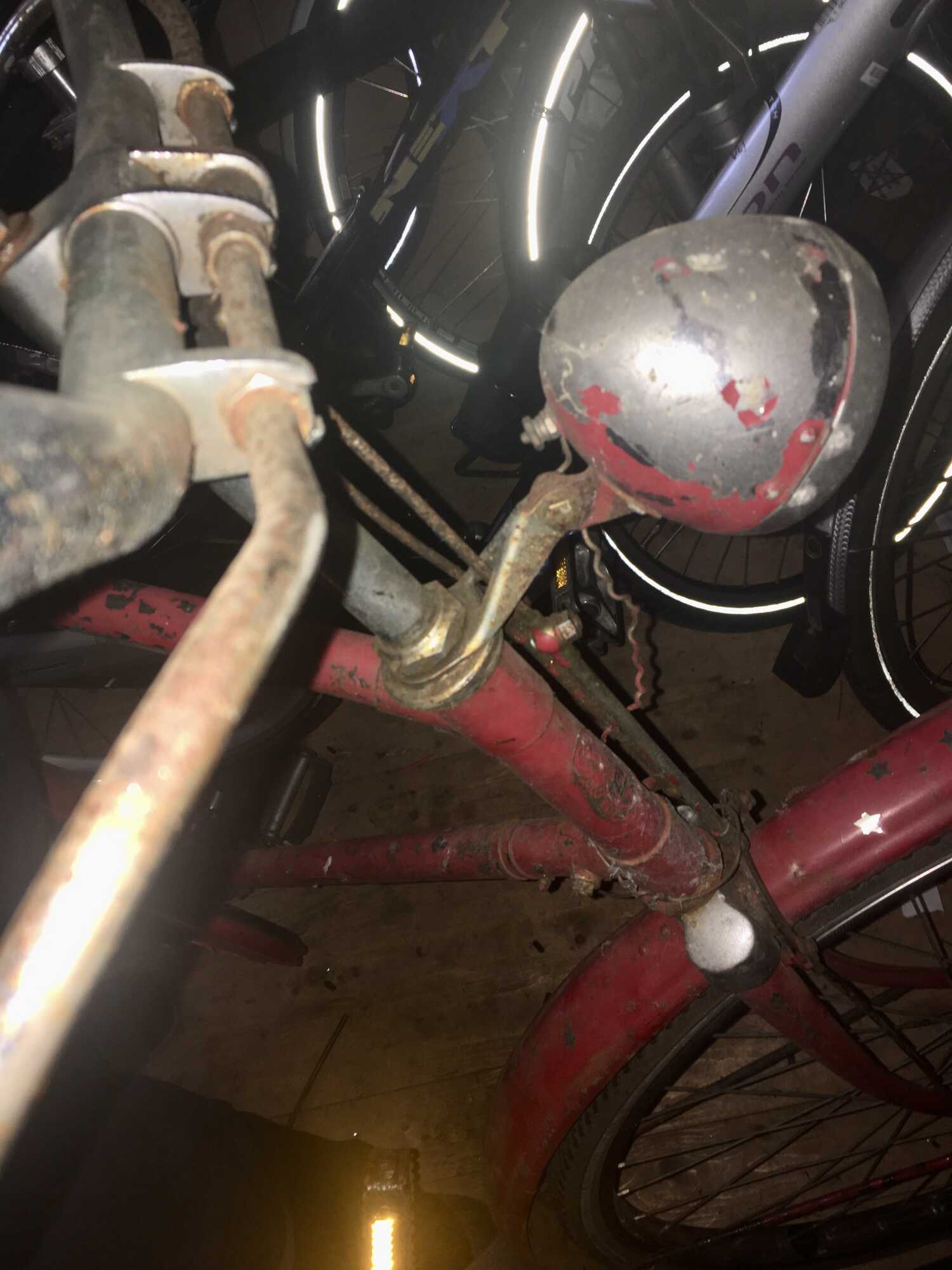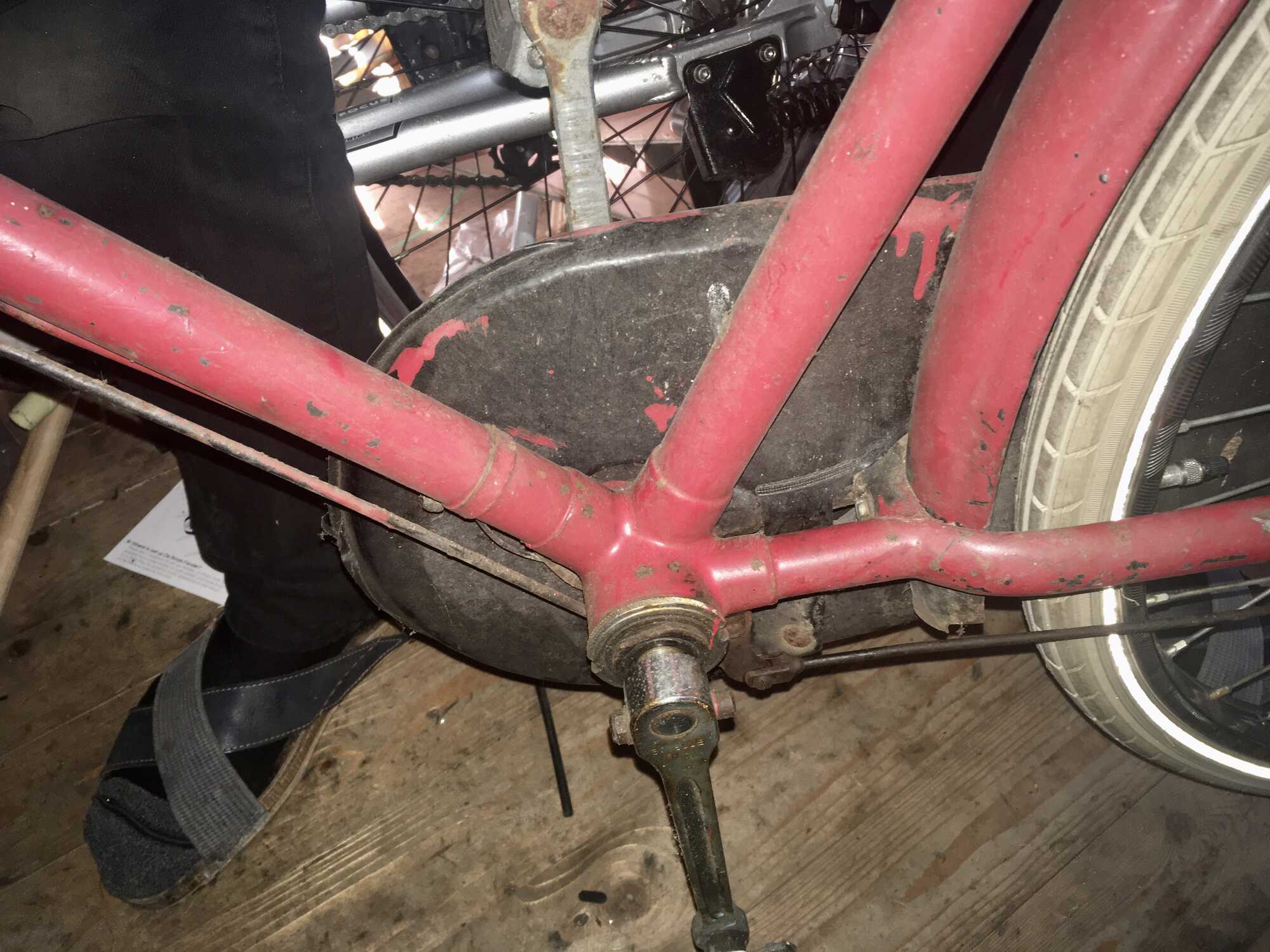 Helaas veel roest, gelukkig minimaal speling in de trapas en veel "roze" afkrapwerk