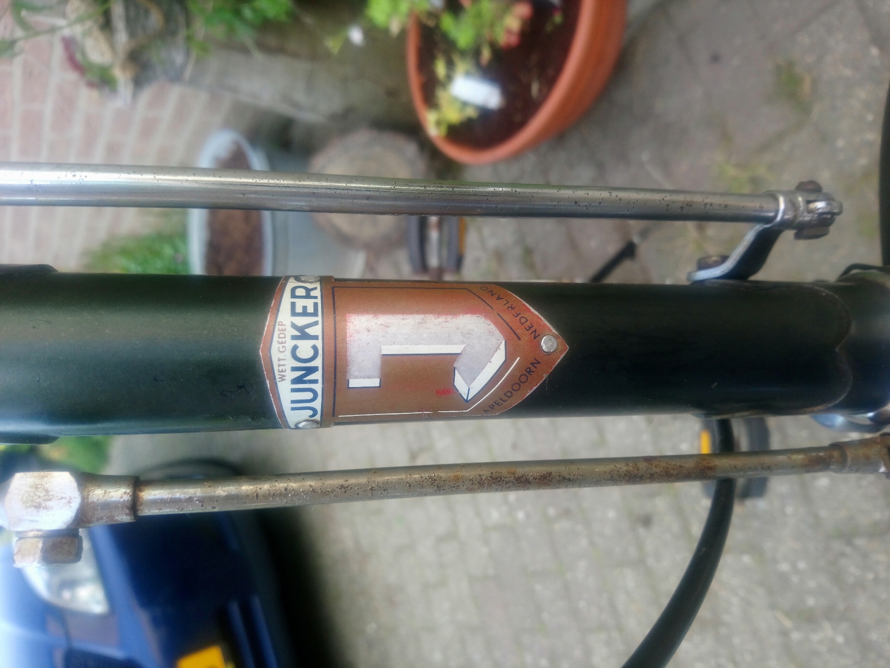 Deze omafiets is recent van eigenaar gewisseld met de bedoeling om 'm zoveel mogelijk terug te brengen in originele staat. Exemplaar komt uit de fase van overname door Gazelle, dat kan haast niet anders. Het lijkt erop dat het merk Juncker (frame) als zodanig nog jaren heeft voortbestaan maar wel steeds meer voorzien werd van Gazelle onderdelen (?)