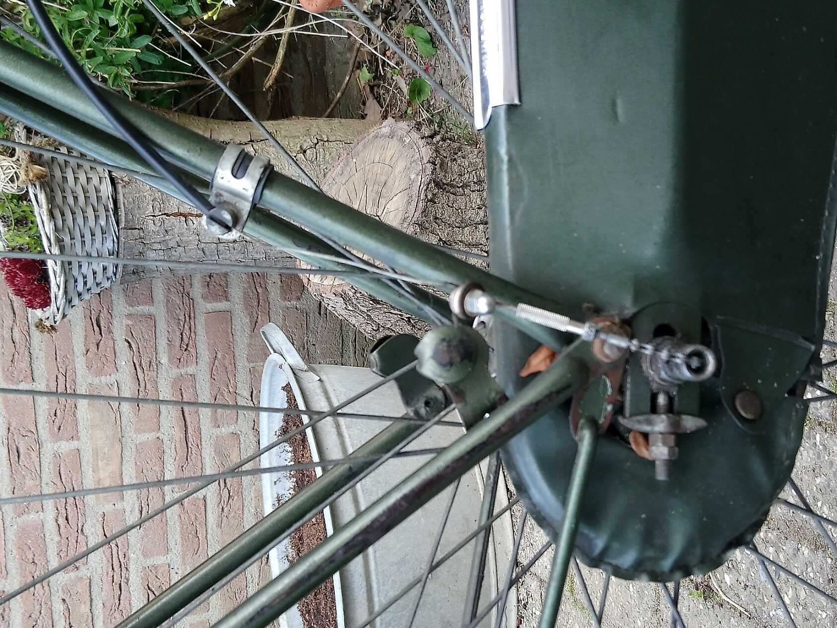 Intussen een vrijwel identieke Gazelle omafiets met dezelfde kleur frame en onderdelen als donorfiets op de kop getikt. Het achterspatbord is in slechte staat en de donorfiets brengt redding. Er kan dus weer naar hartenlust geklust worden!
