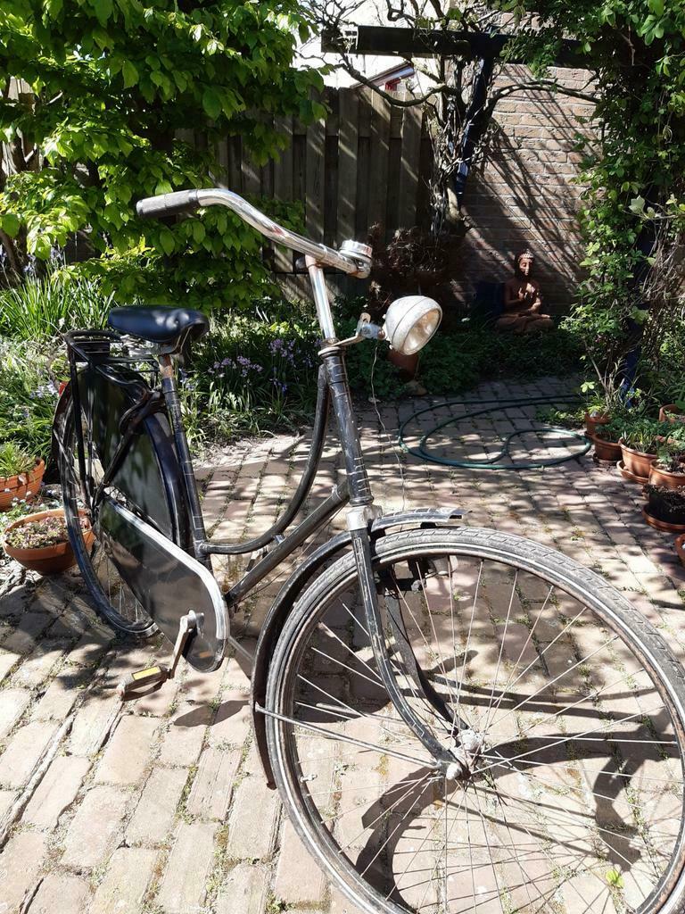 Mooie fiets! Over de lamp is niet correct. Phillips Philidyne lampen zijn wel nog volop na de oorlog gemaakt, dus die kan goed rond die tijd er nieuw op gezet zijn. Met name in de jaren '40 na de oorlog was de productie het grootst, omdat toen de Duitse productie stil lag. Wat informatie (meer hier te vinden: https://oudefiets.nl/index.php?option=c ... ategorised ):