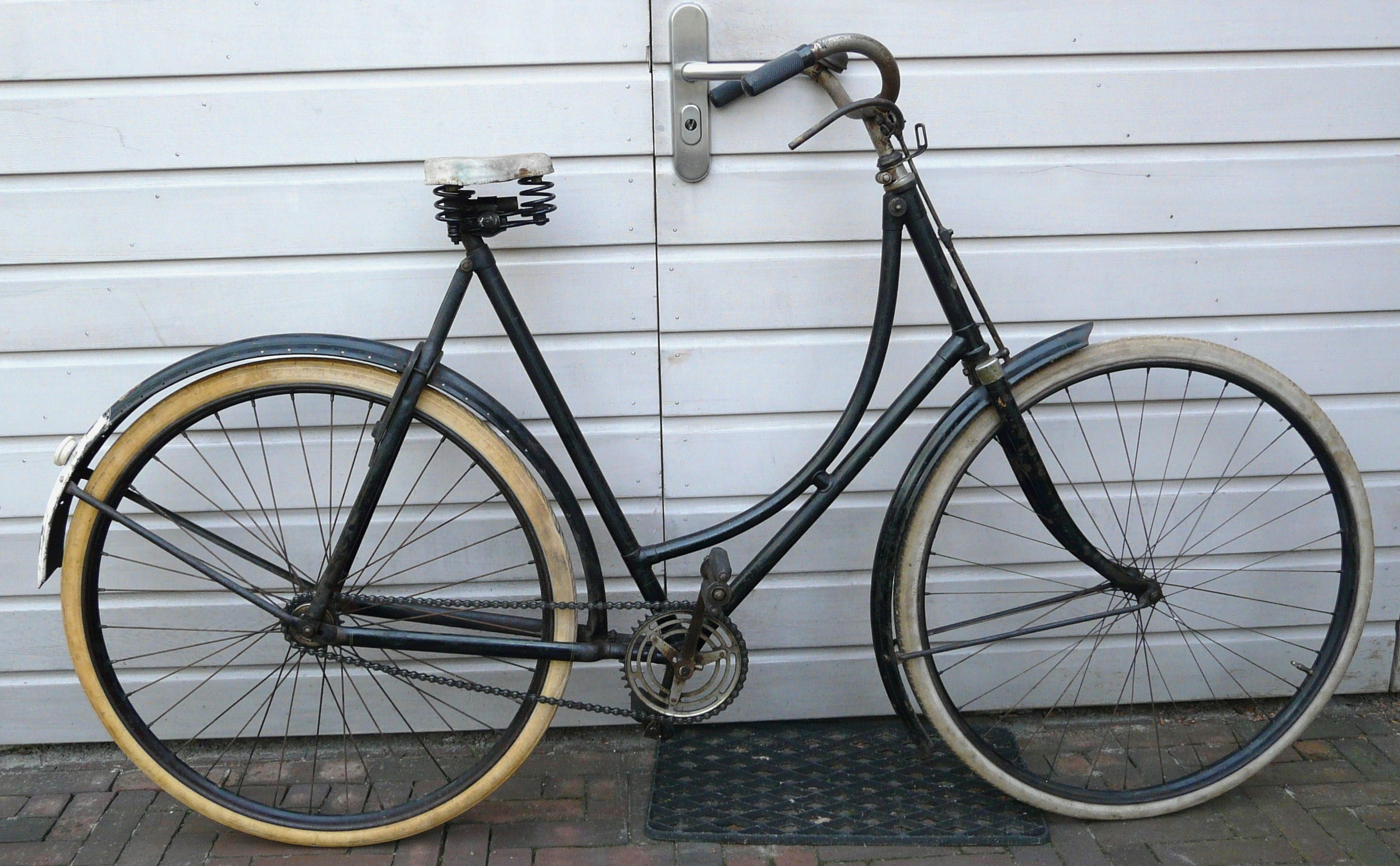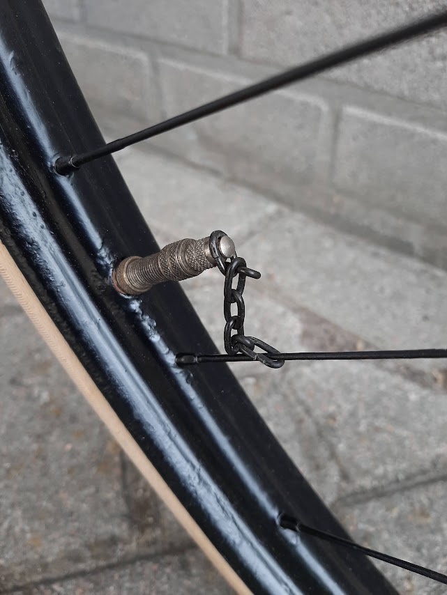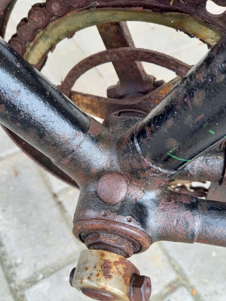 En Freek: het kettingscherm is inderdaad niet origineel. Ik heb het destijds in de VS gekocht op Ebay; deze kettingschermen werden tussen 1900 en 1910 vaak op damesfietsen daar gemonteerd (wat ze in Zweden zijn blijven doen). Het is dus uit de periode van de fiets. Ik heb het onlangs zijdeglans gespoten omdat het flink roestte na een eerdere behandeling. Zelf vind ik het een mooie twist aan de fiets geven, maar goed dat blijft een kwestie van smaak. Het alternatief is om er geen kettingscherm op te doen, maar dat staat wel heel kaal. Een passende intacte gesloten kettingkast in celluloid of leer uit begin 1900 ga je niet snel meer vinden. Het restaureren van dit soort oude fietsen blijft vaak een kwestie van compromissen.