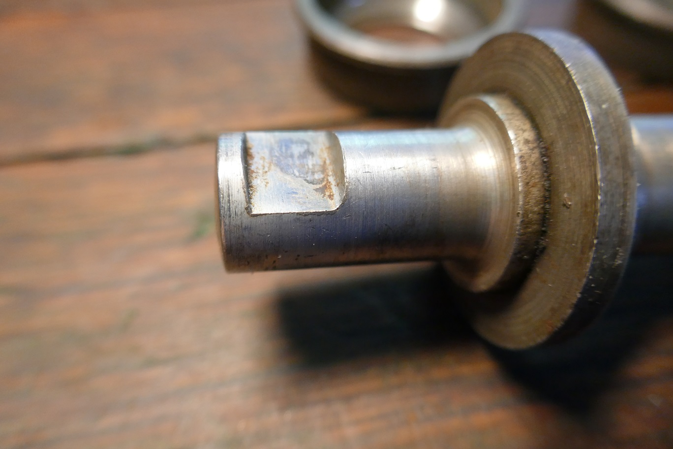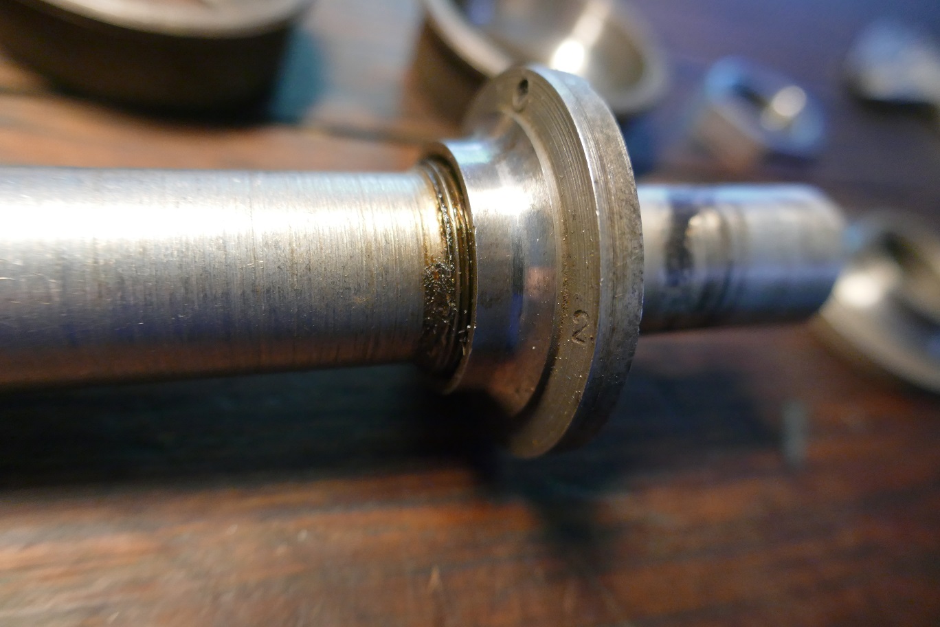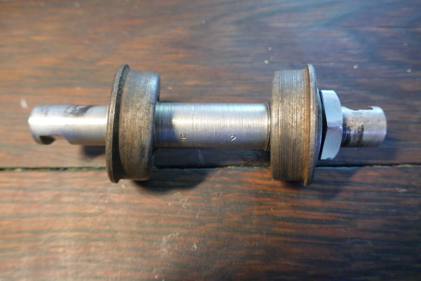 Deze trapas heb ik te ruil (niet te koop). De asdiameter is 17,0mm, lengte 140mm en cup diameter is 45,4mm (Gazelle?). De trapas is bijna kompleet, mist alleen de tussenring tussen de linker conus en borgmoer. Hij is gemonteerd geweest, maar heeft vrijwel geen slijtage.