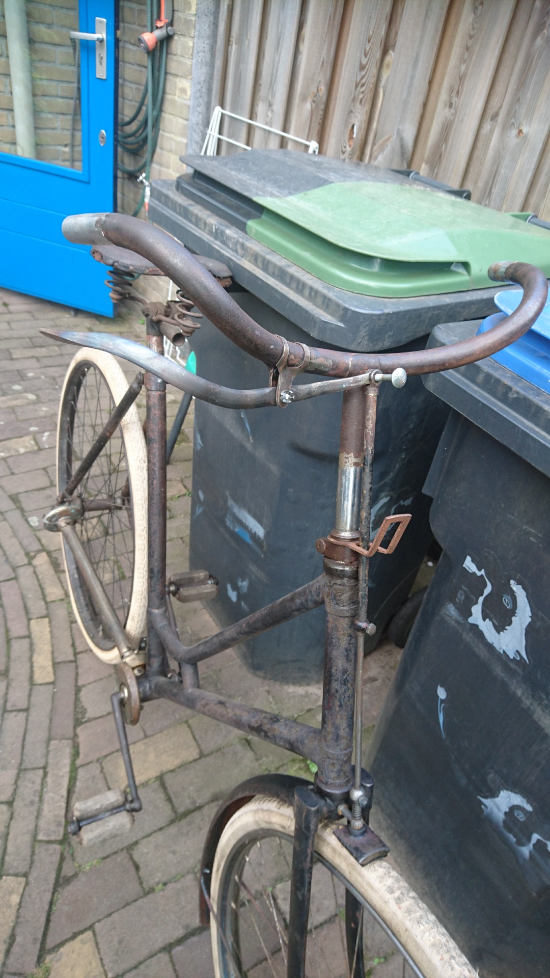 Erg leuk is dat het museum De Waag in deventer een schitterend bewaarde fiets heeft van hetzelfde model die slechts ca 500 framenummers van de mijne verschilt. Dat biedt houvast bij het opknappen.