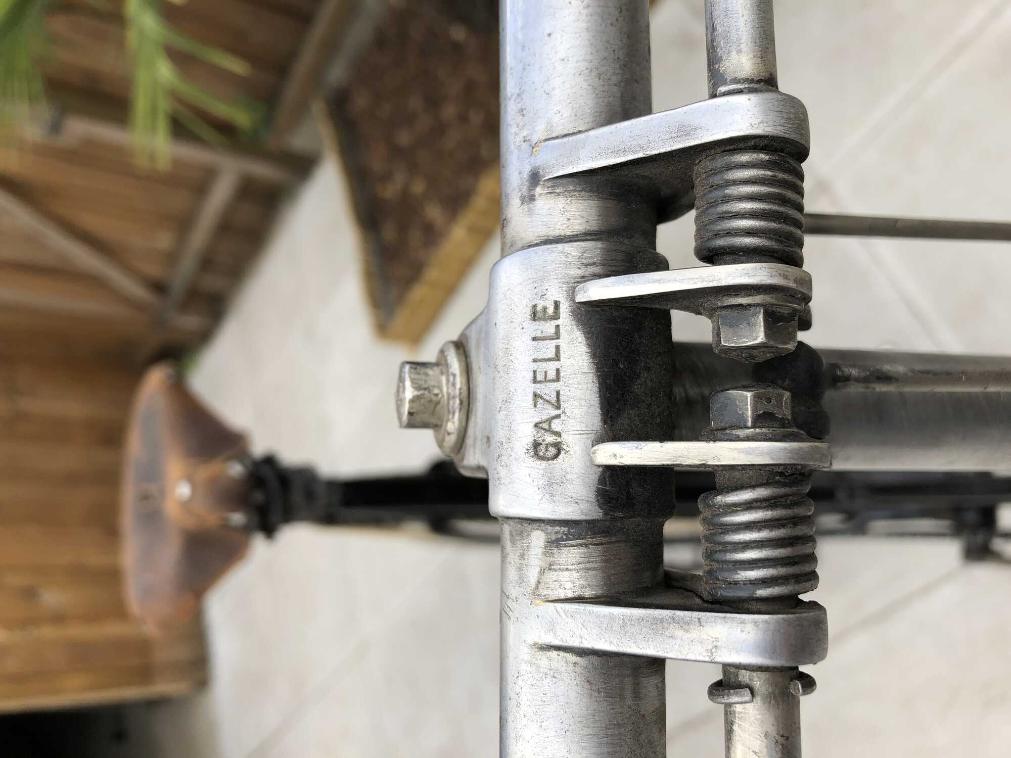 Ik zou denken dat gezien het framenummer er een balhoofdplaatje op mag wat gedurende de 20-30 er jaren op Gazelle fietsen zat.