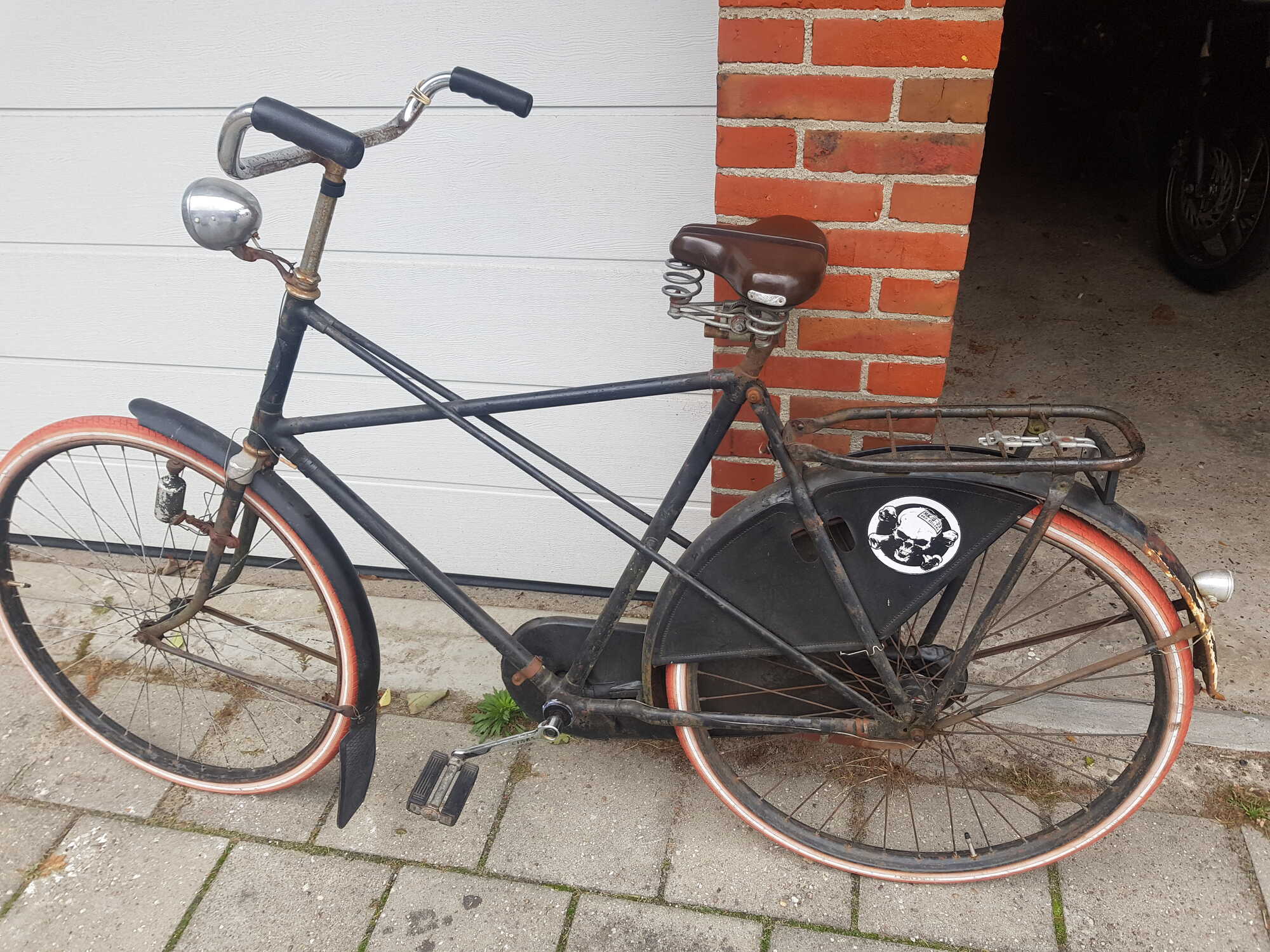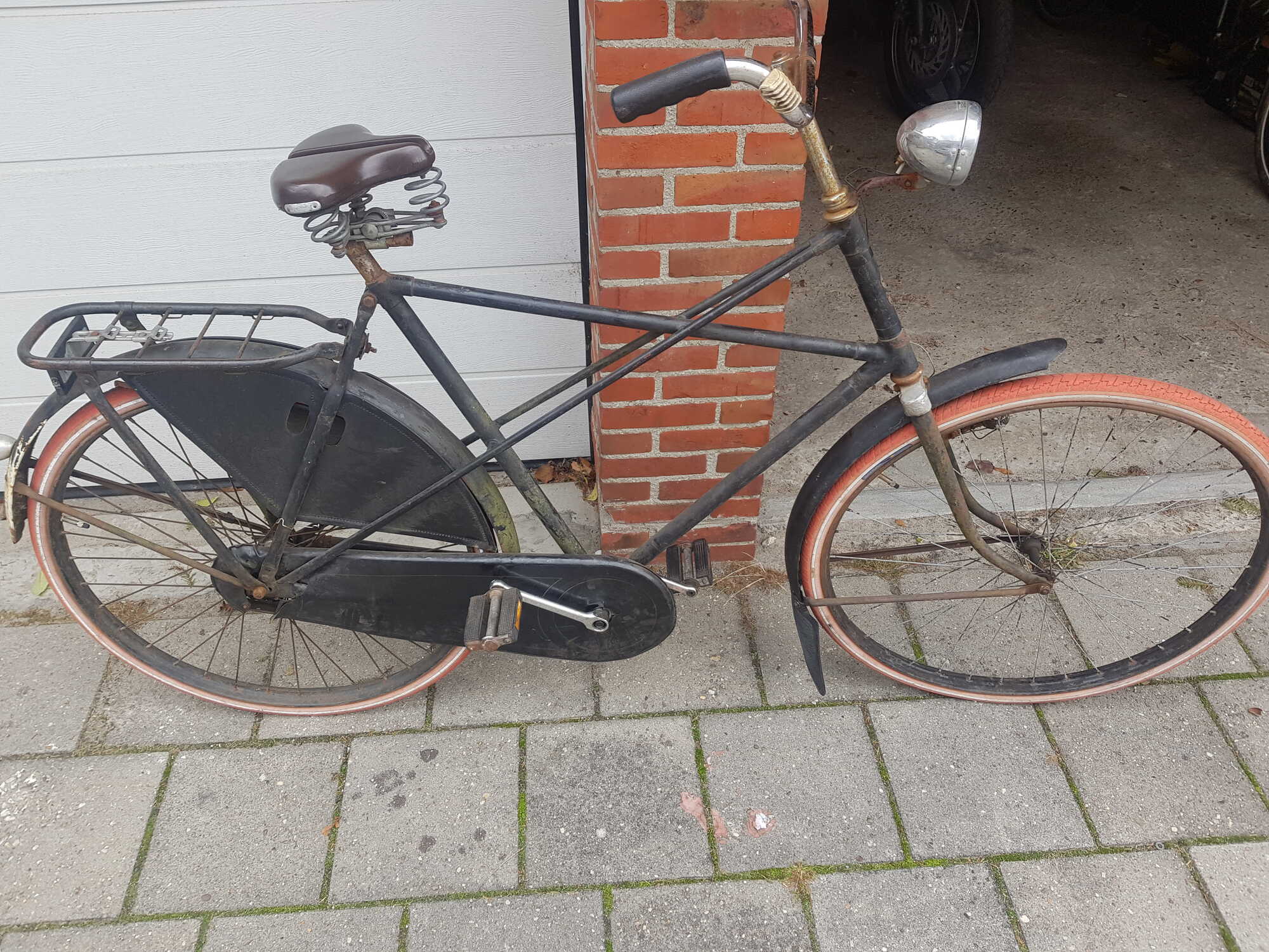 Als ik het zo zie is er vrijwel niets meer origineel aan de fiets, zelfs de voorvork niet. Het balhoofdplaatje is van het nieuwe type, dat vanaf ongeveer 1955 gebruikt wordt volgens mij. Ik verwacht dat het framenummer dus de locomotiefnummering volgt. Dan zou je op 1960 uitkomen..