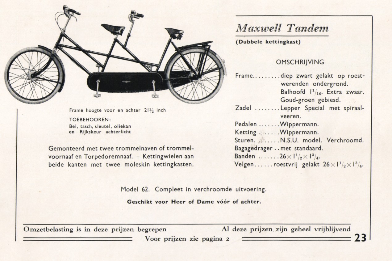 Je bedoelt te zeggen dat jouw tandem ook een Maxwell is? Een merkplaatje zie ik er niet op staan maar je hebt wel gelijk: ik zie nu dat Maxwell inderdaad nog een ander tandemmodel heeft gemaakt dat op de genoemde punten wél met jouw tandem overeenkomt.