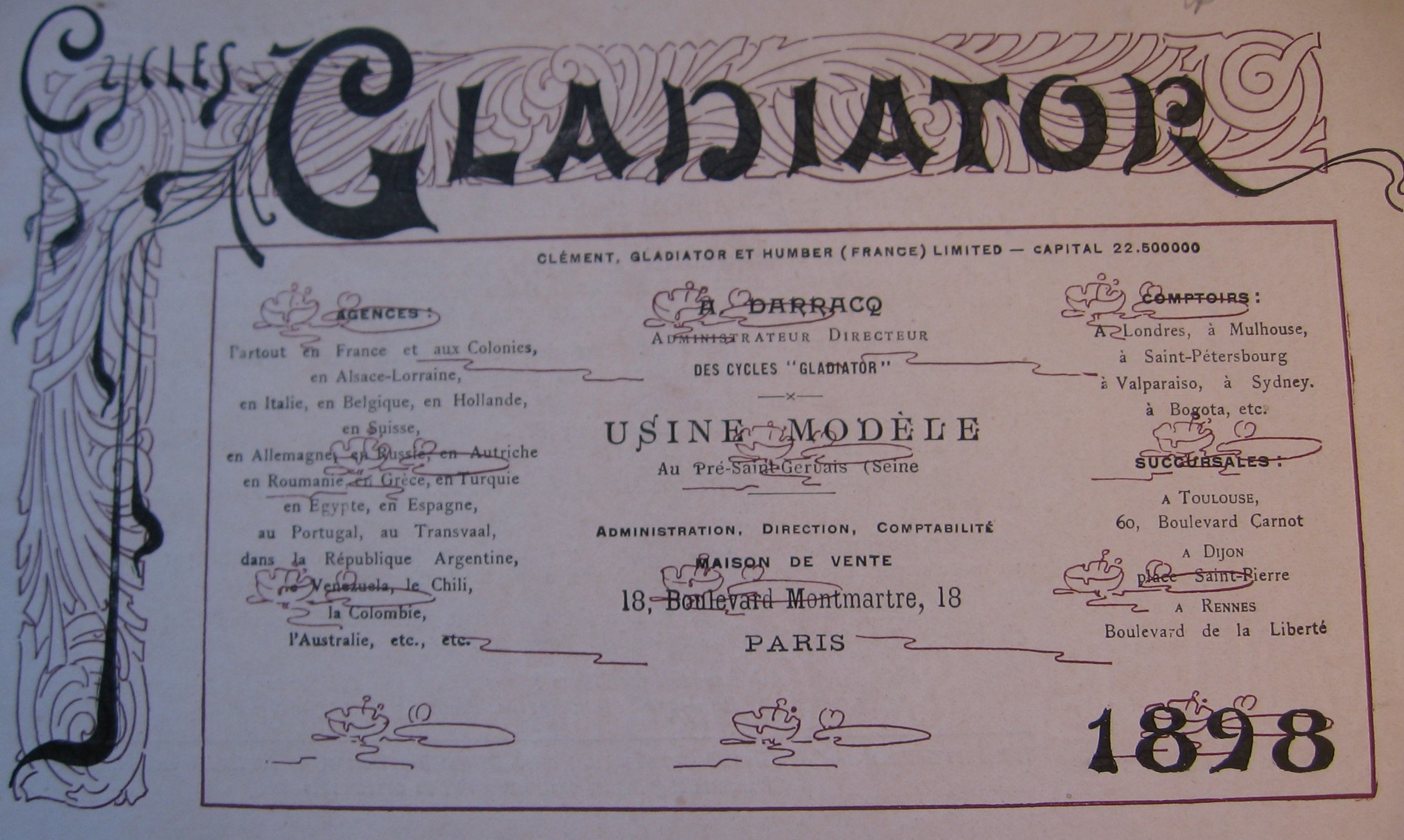 De geschiedenis van dit merk, staat (in het Frans) hier https://fr.wikipedia.org/wiki/Gladiator_(entreprise) beschreven.