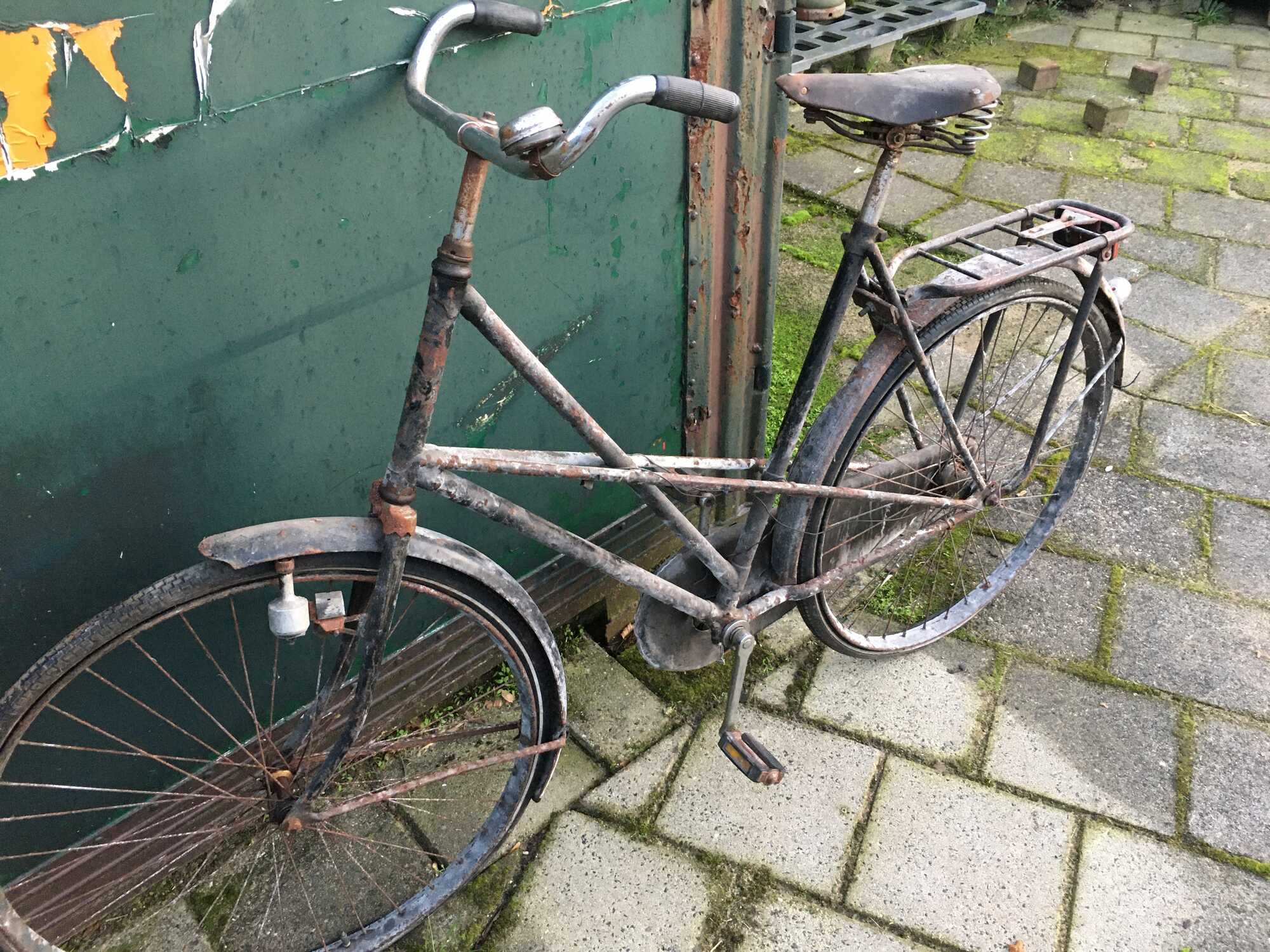 Ik zie 'm van afstand en ik denk gelijk; ''Een Locomotief kruisframe zonder vaste bagagedrager, dus vóór of tijdens de oorlog gemaakt". Maar wat schetst mijn verbazing, er zitten 28x1,5 wielen onder. Het is dus een toerfiets!