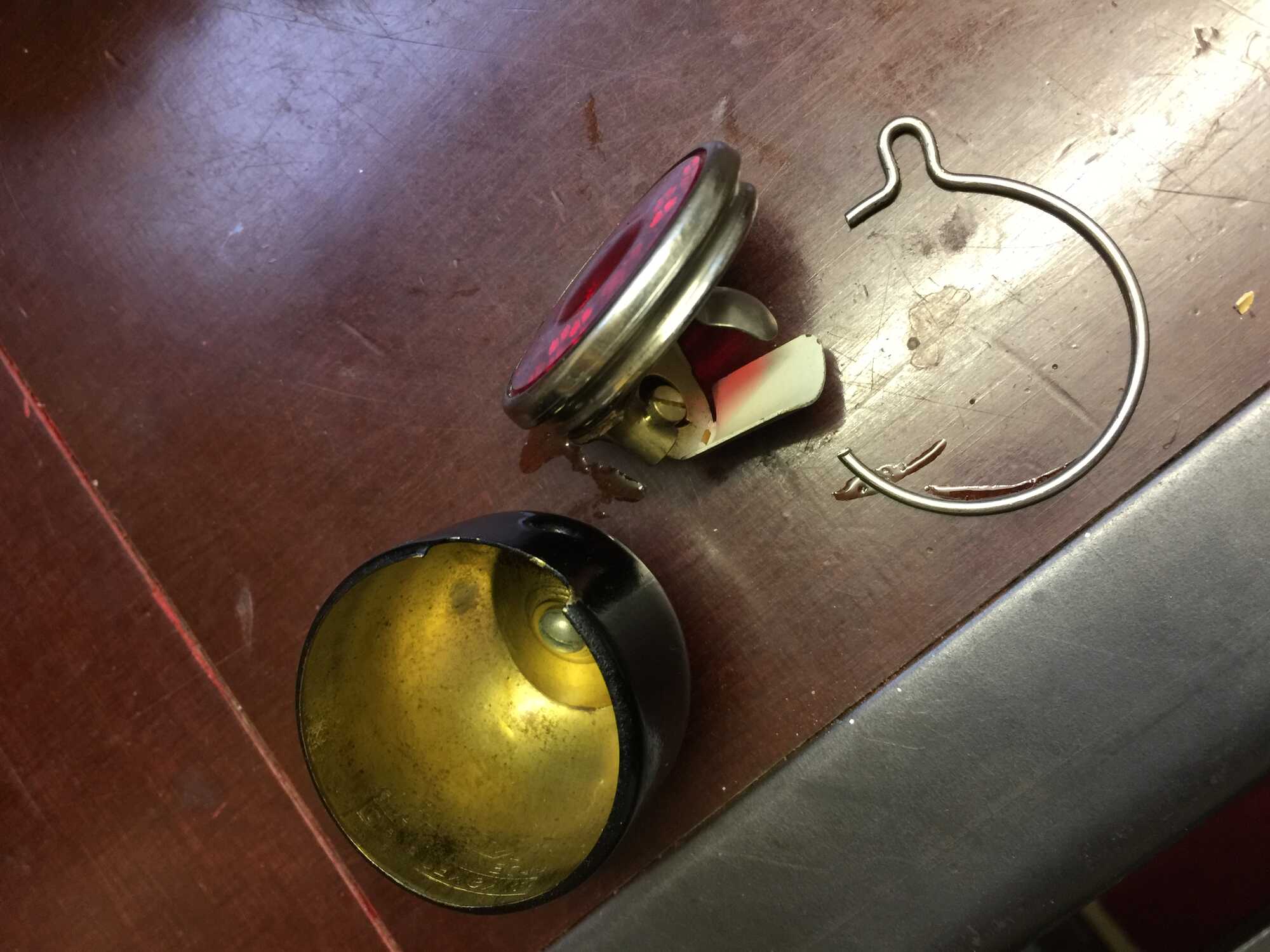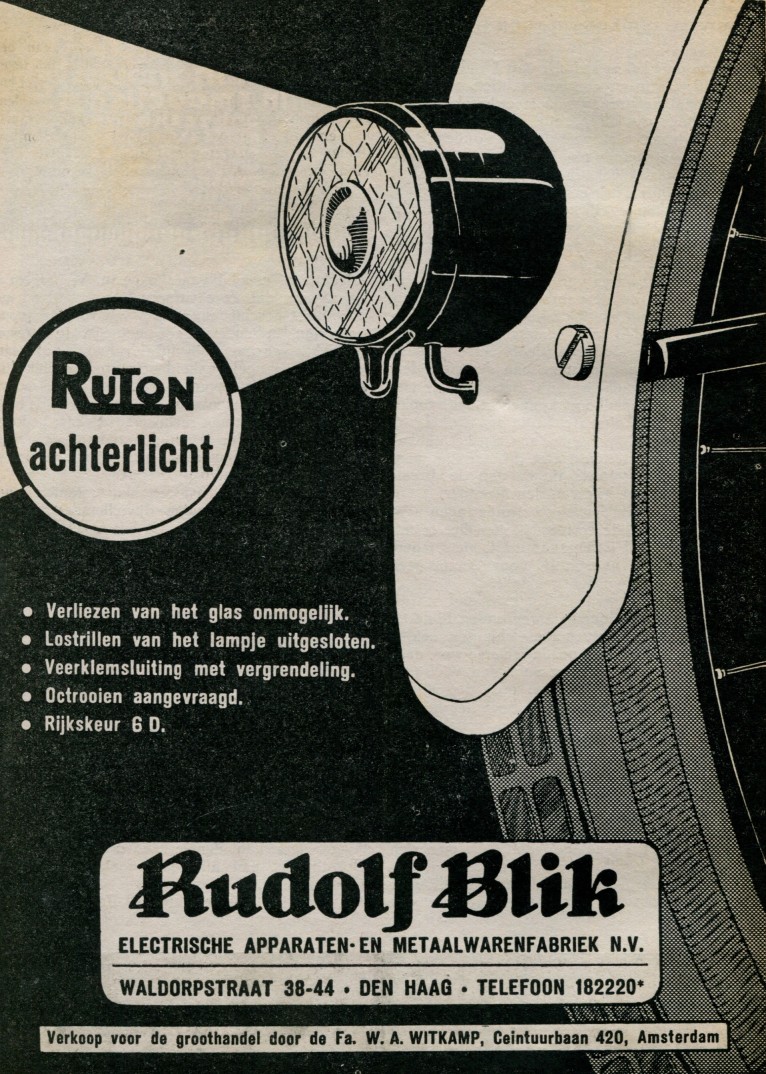 Staat begin 1949 een aantal keren in "De Nederlandse Rijwielhandel". Voor achterlichten gold toen het voorschrift dat je het lampje zonder gereedschap moest kunnen vervangen. Dus het zou zonder veel gedoe mogelijk moeten zijn.