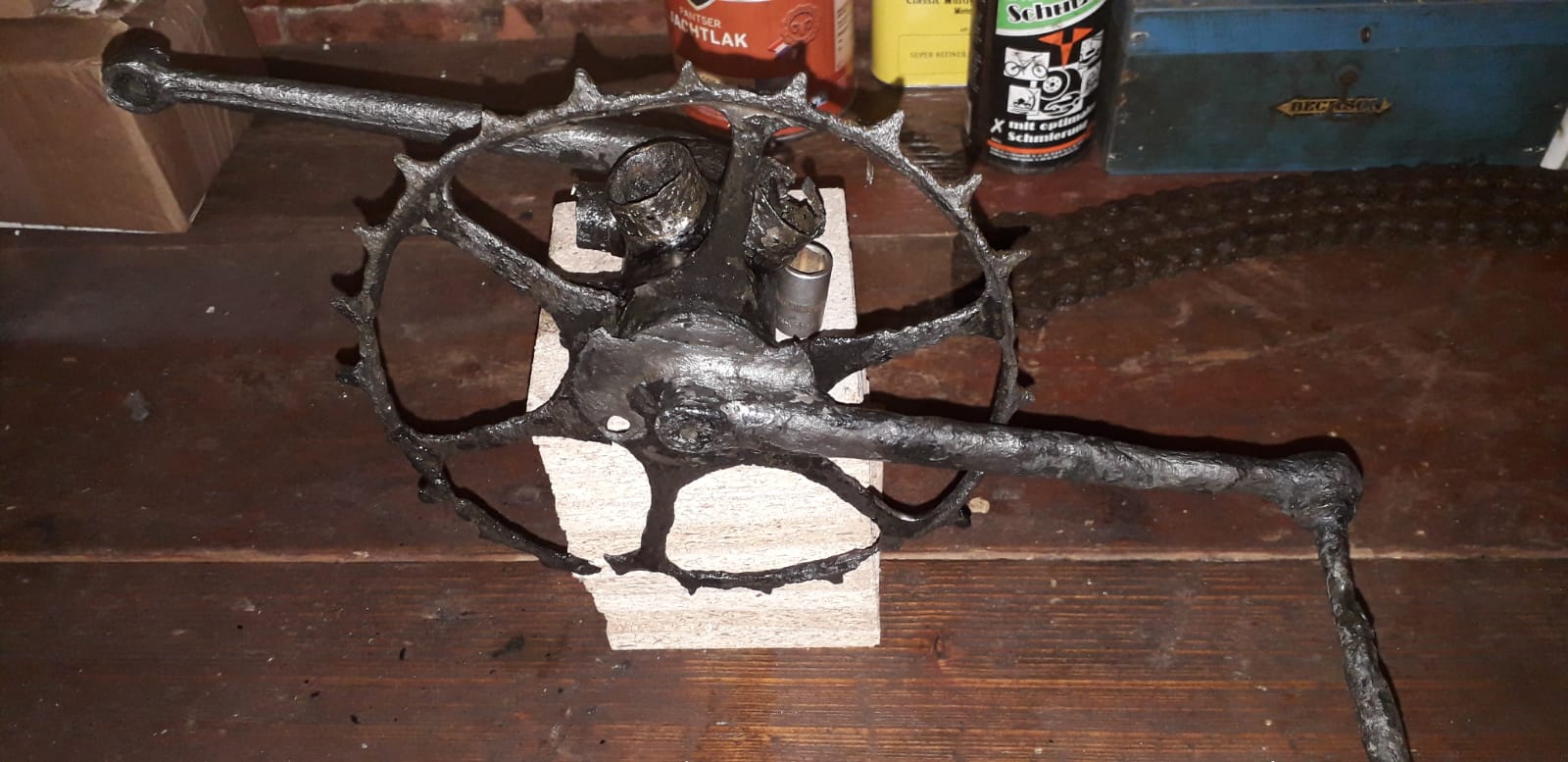 ik heb deze crank met skiptooth tandwiel gevonden alleen weet ik niet van welk merk deze is