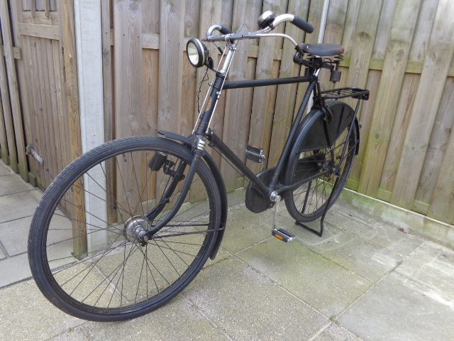 Sinds gisteren in het bezit van een Gazelle uit 1940. Deze is destijds nieuw verkocht door rijwielhandel Jan Baas op de Ceintuurbaan te Amsterdam. De algehele conditie is zeer goed, wel wil ik de kettingkast, jasbeschermers, pedalen en bagagedrager met standaard vervangen. Als iemand zo'n bagagedrager te koop heeft hou ik me aanbevolen. Wat mij verbaast is dat de Gazelle het 81 jaar in Amsterdam heeft uitgehouden, niet in beslag genomen door de Duitse bezetter en niet gewoon gestolen, het originele Gelria slot zit er nog op. :D