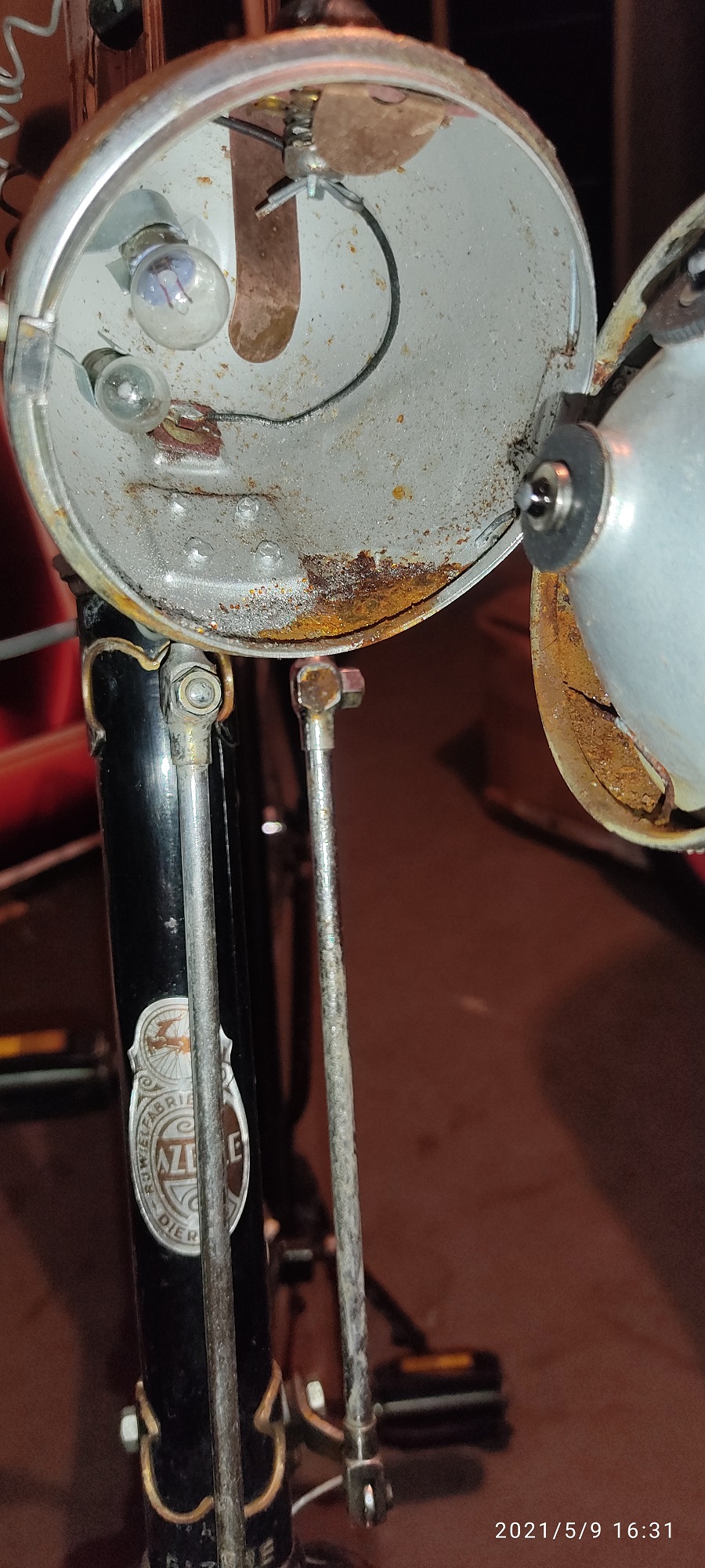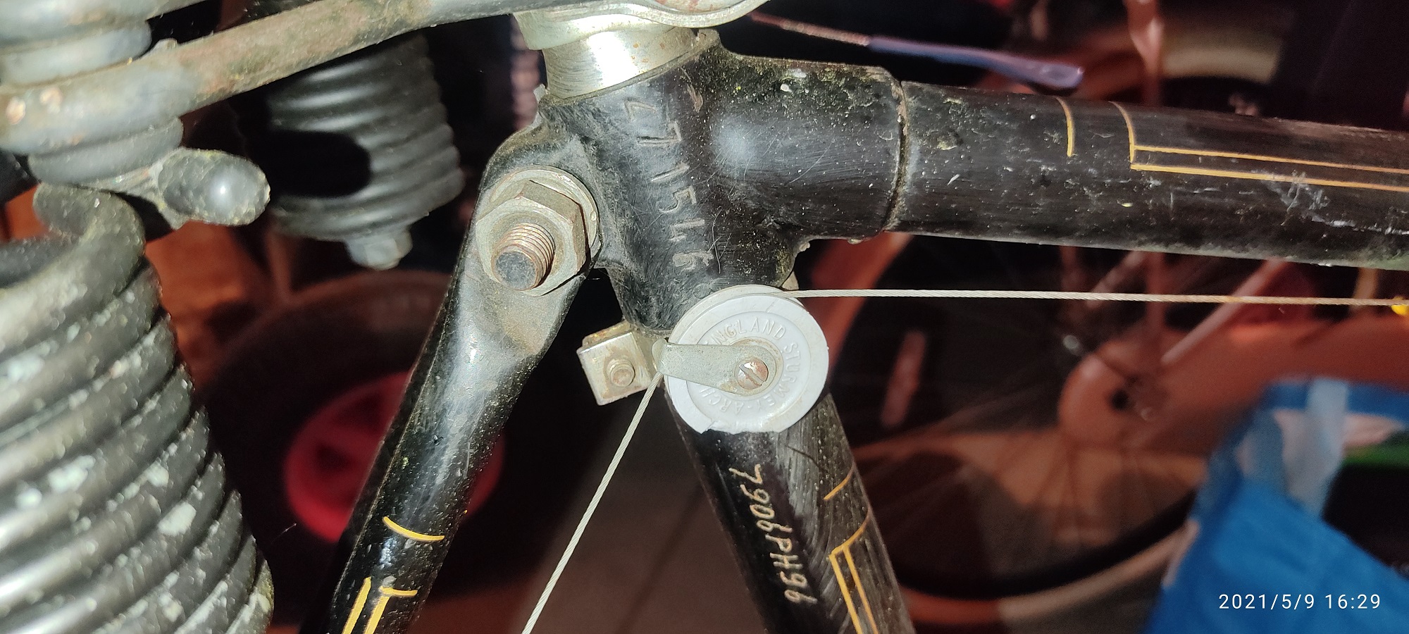 - lampen zijn niet aangesloten, en de stroomkabeltjes lopen door het stuurbuis en komt uit ergens onder de midden buis denk ik en ik weet dus niet hoe je dan zo'n stroomkabeltje door de buis heen trekt om het te vervangen...met een magneet misschien of is er een bepaalde manier?