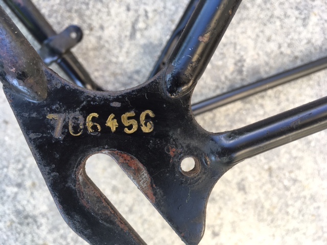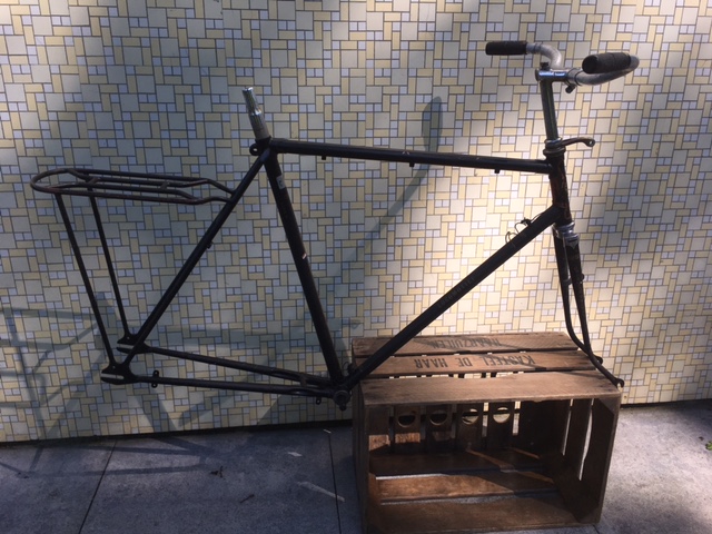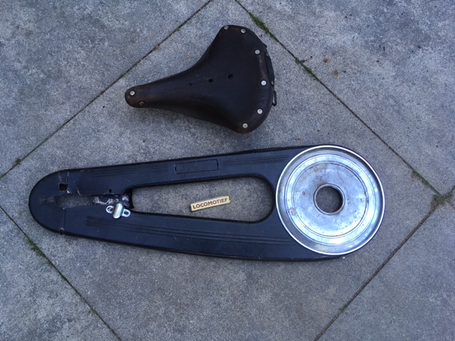 Het is een Tour de France 1957 zwart met 4-SA die ik heb overgenomen van de kleindochter van de oorspronkelijke eigenaar. Een fiets met toen al ruim 50 dienstjaren die bij overname niet al te best en origineel meer was. De fiets is daarom gedemonteerd en voorzien van een nieuwe trapas, de balhoofdlagers waren nog OK. Dit exemplaar had oorspronkelijk een gesloten kettingkast en daar is nu ook een complete van bij + reserve. Inmiddels zijn er ook originele wielen en naven gevonden. , een setje Weimann spatborden en complete remset iheb ik nog wel liggen. Met een Locomotief bel + koplamp en Koets-achterlicht is het bijna compleet ; alleen niet de juiste dynamo maar wel een exemplaar uit dezelfde periode. Crankstel en pedalen ontbreken nog. Fiets mag worden geruild tegen Locomotief-folders uit de periode 1953 - 1968 of ander leuk Locomotief materiaal. Of leuke dingen van JOCO.
