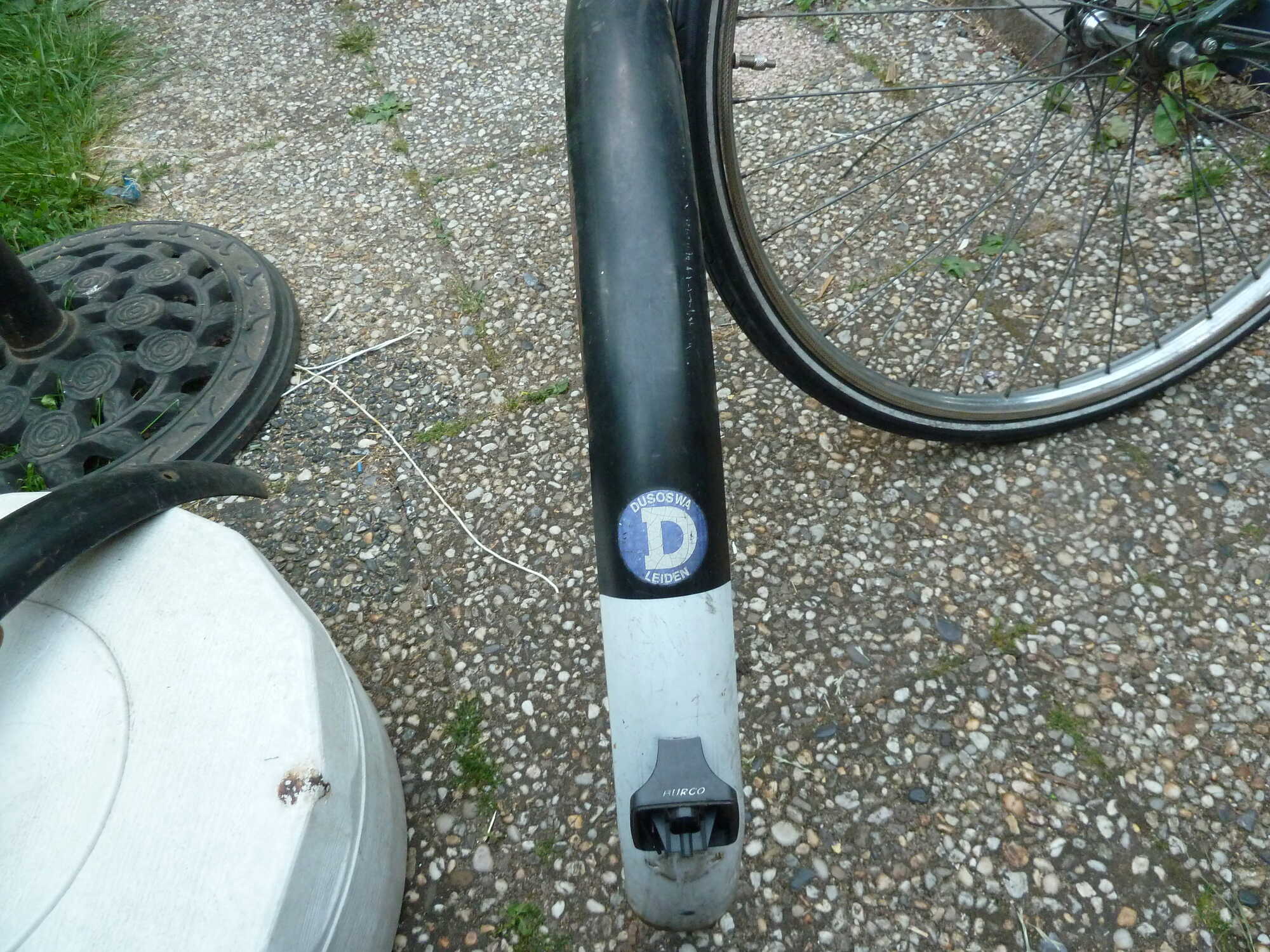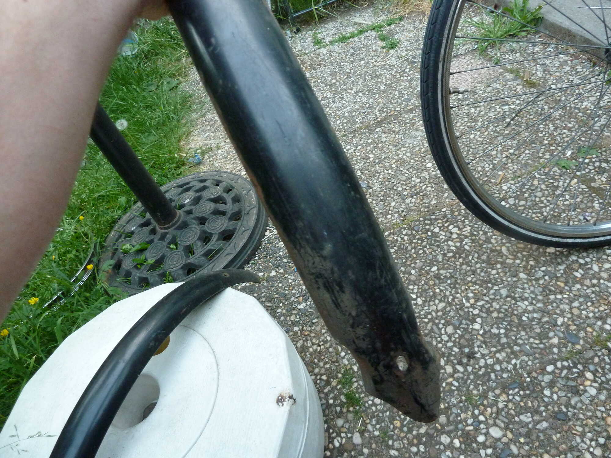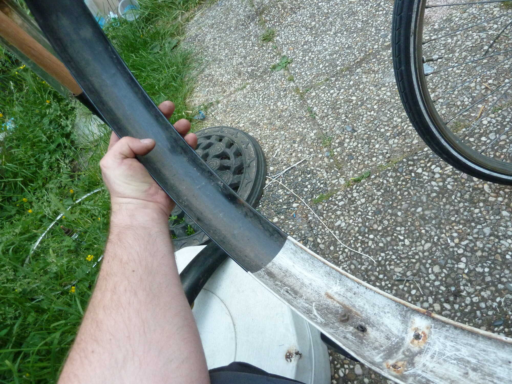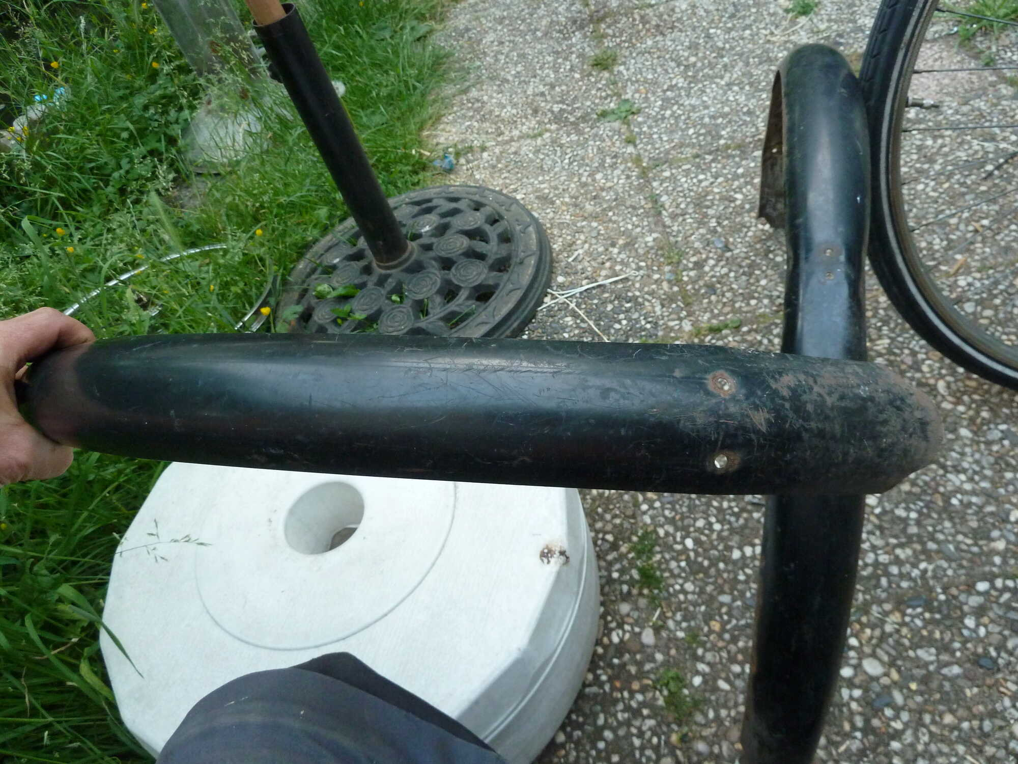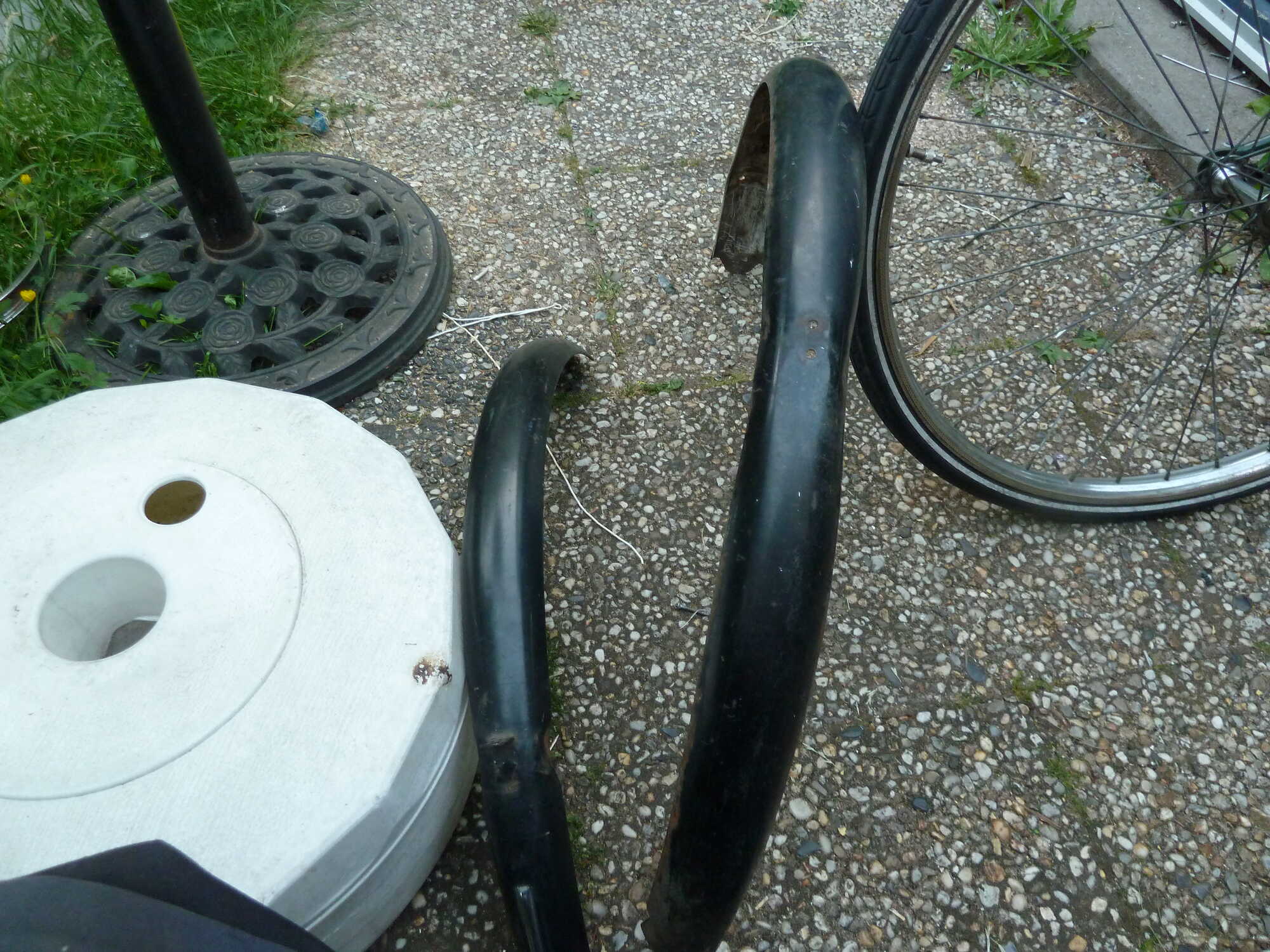 Brede, dikke spatborden,. vermoedelijk voor Gazelle transportfiets 50-60 gezien de afdruk van het plaatje waar de spatbordstang word bevestigt.