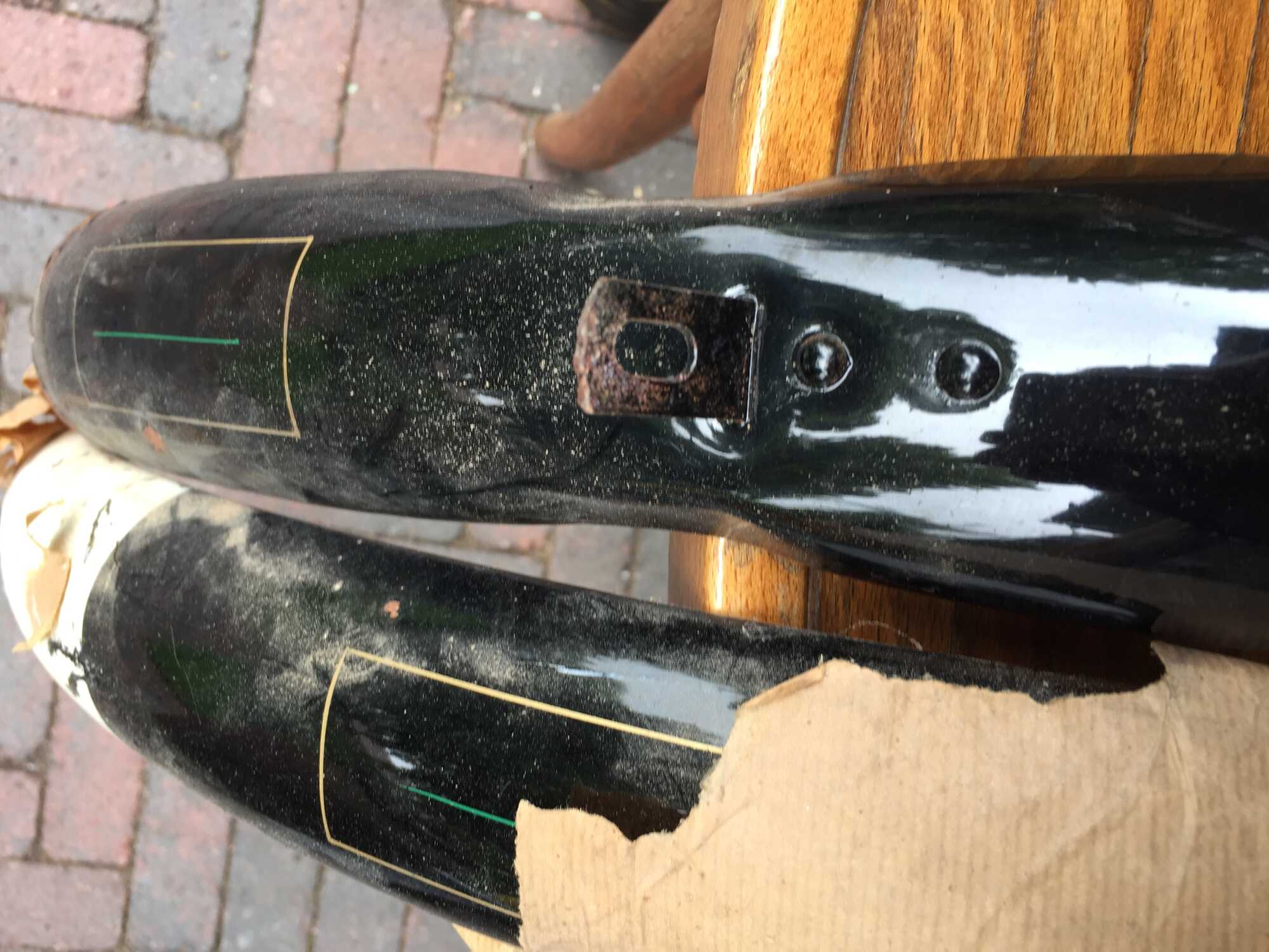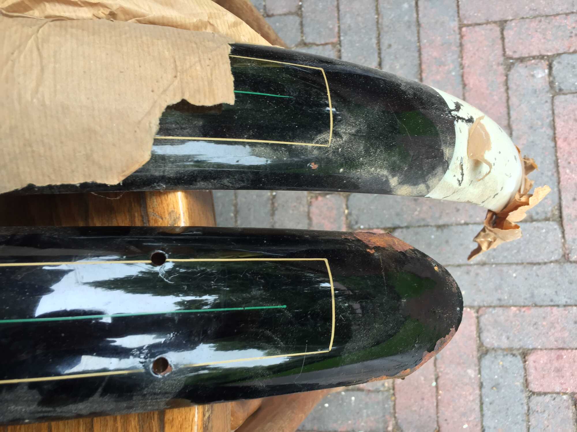Er zijn spatborden uit 1940 te koop. Niet gebruikt maar wel wat opslagschade aan de lak.