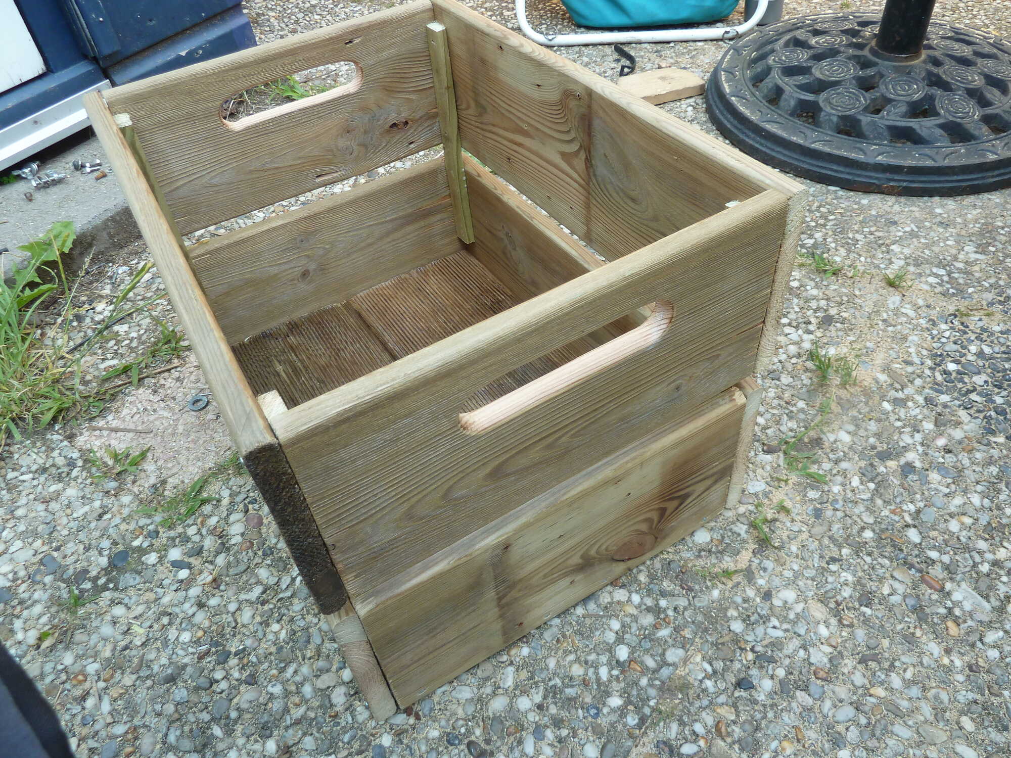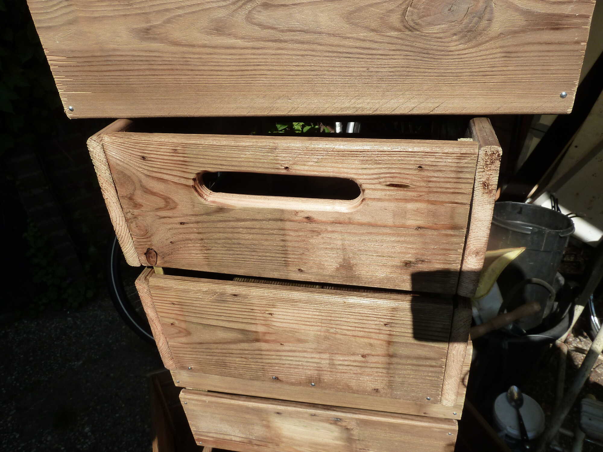 omdat ik wat hout in m,n garage had wat in de weg lag heb ik de afgelopen dagen wat houten kratjes voor op het rek van een transportfiets in elkaar geknutseld.