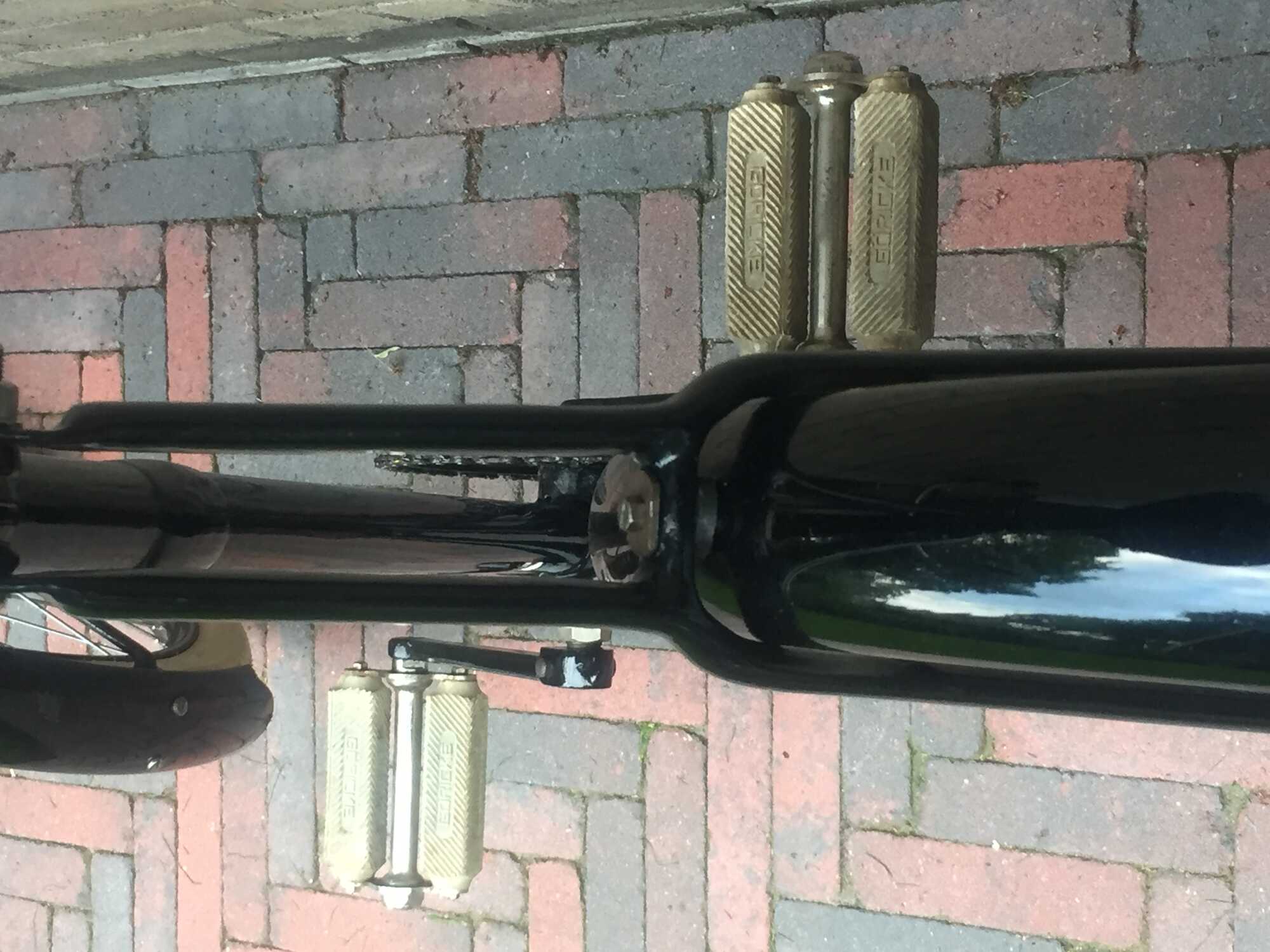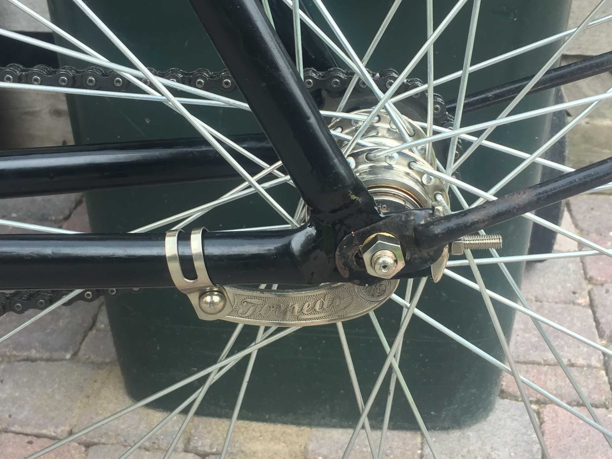 Het frame is 24” of 61cm hoog en van 1924. Alle onderdelen zijn toegevoegd dus alleen het frame is te herleiden. Het balhoofdplaatje zit er niet meer op. De Göricke van 1925 die ik al had en deze hebben identieke frames. Daardoor heb ik het kunnen identificeren.
