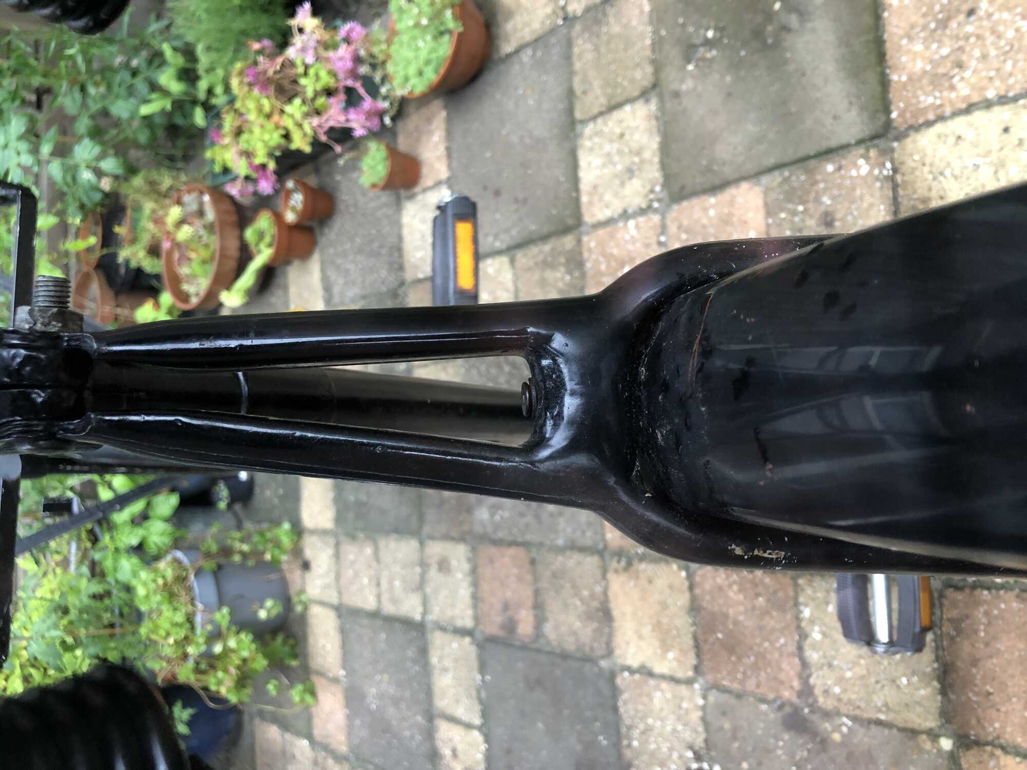 Het bovenste balhoofdlager werd o.a. gebruikt door Germaan. Het onderste door Juncker. Daar is dus het een en't ander aan vervangen. De voorvork lijkt ook niet origineel omdat die erg lang is.
