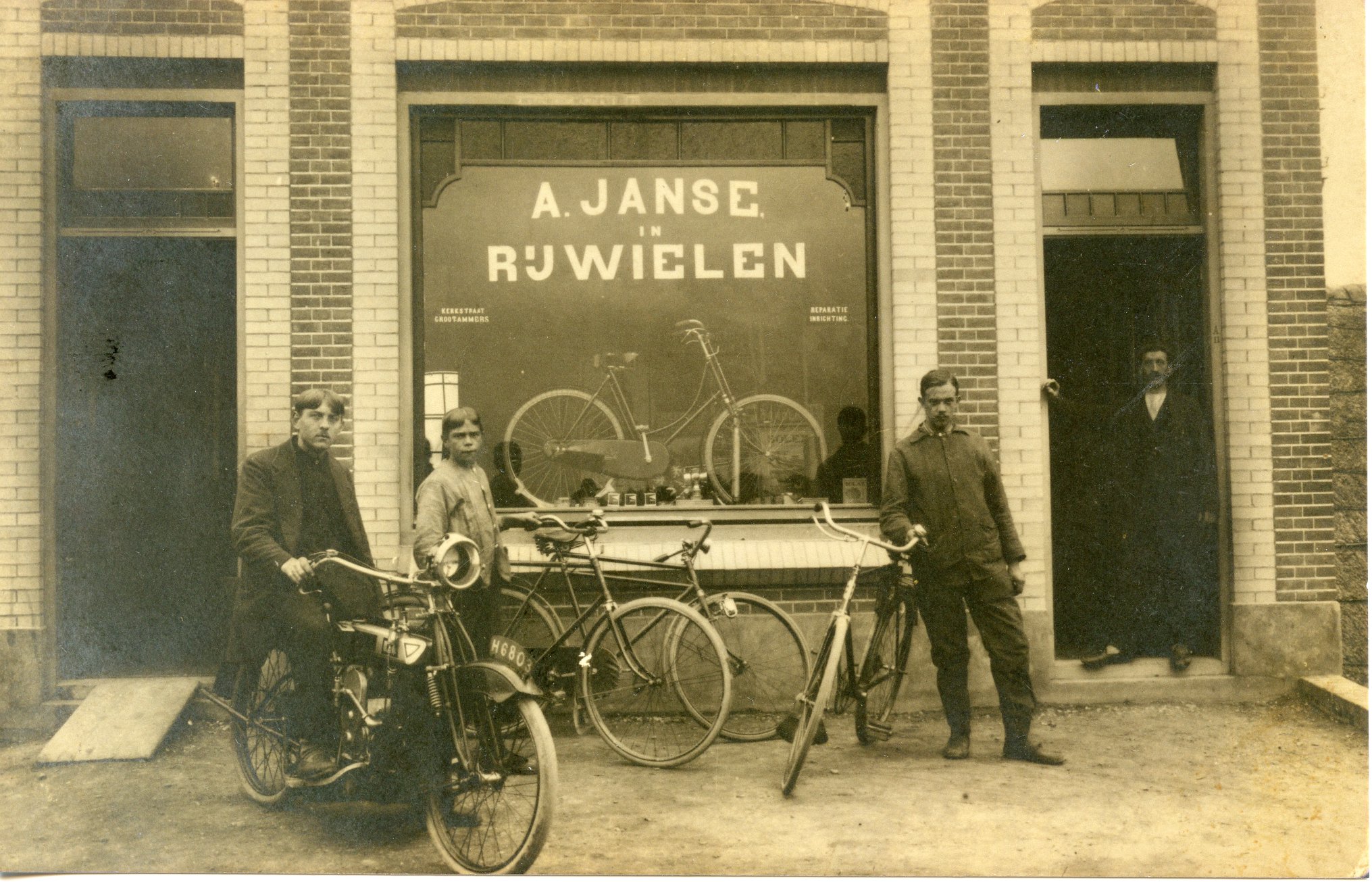 Super! Dank je wel! Dat geeft nog meer bevestiging dat de foto vrij waarschijnlijk genomen is in 1915, het jaar dat Aart Janse als rijwielhersteller aangesteld is.