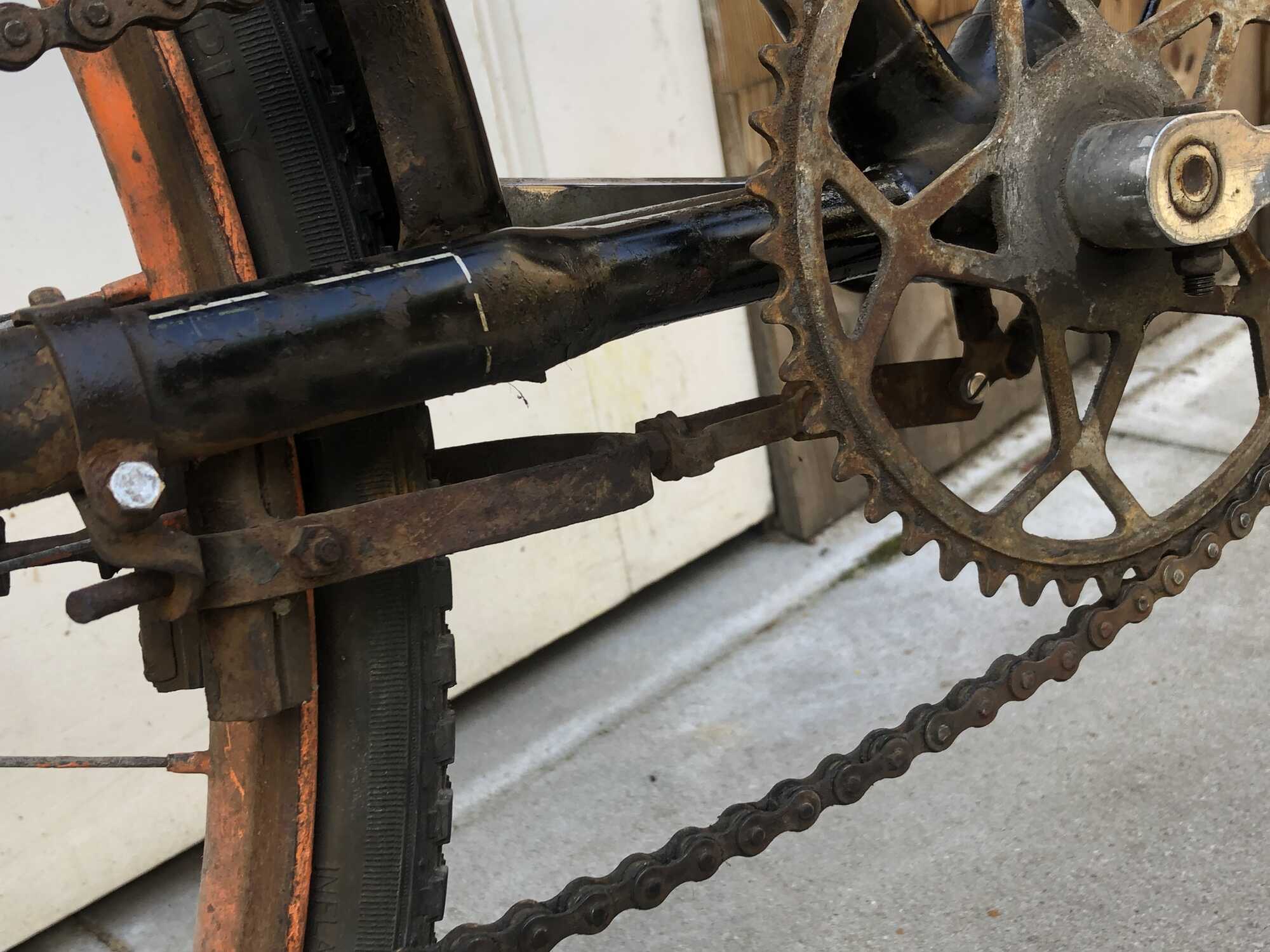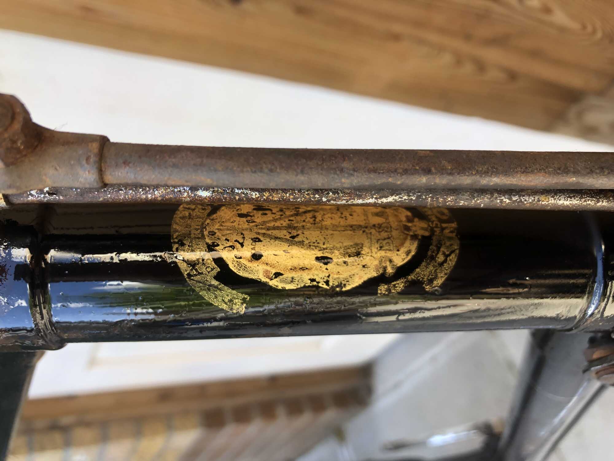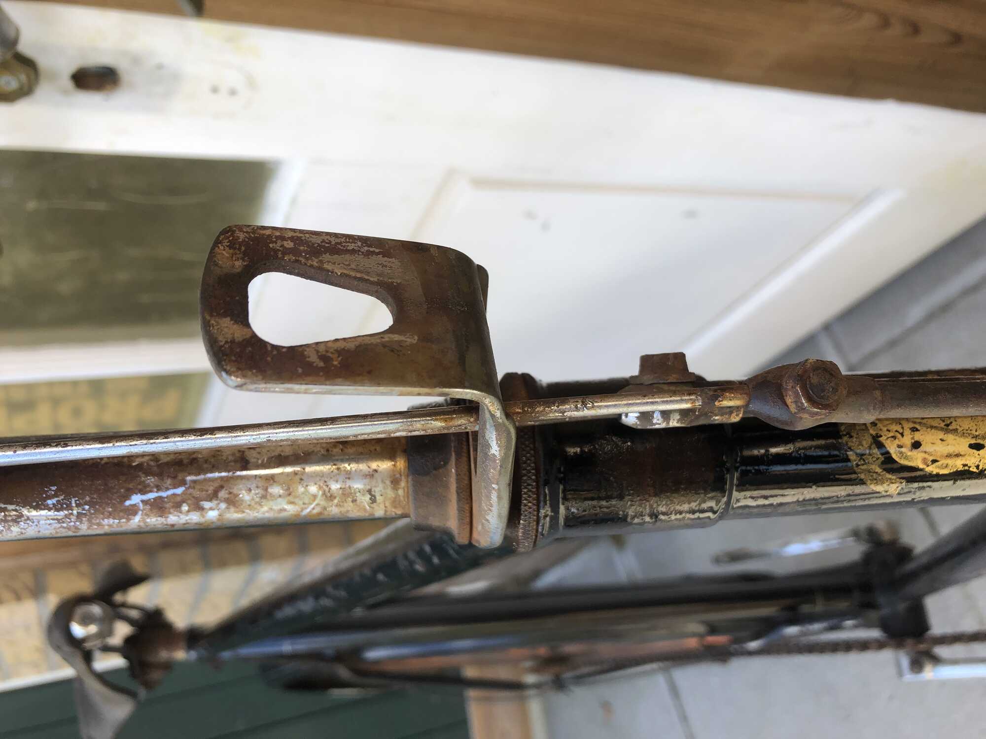 Ook de voorvork en de beugels voor de rem zien eruit als onderdelen van jaren 30/40 fietsen. Jaren 50 zien de optrek rem beugels er niet weer iets anders uit.